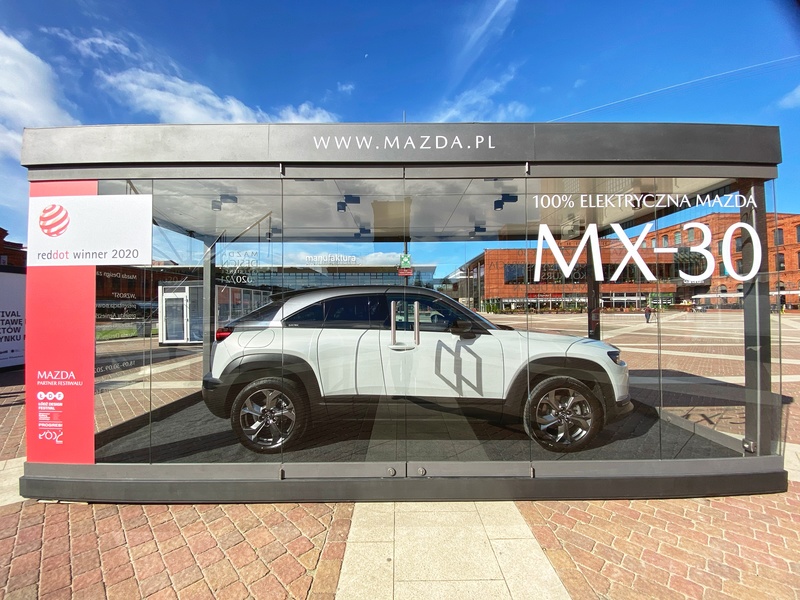 Krótko po wakacyjnym roadshow w wybranych punktach dealerskich Mazdy w Polsce, pierwszy elektryczny model Mazdy – MX-30 – został publicznie zaprezentowany na terenie łódzkiego centrum handlowego Manufaktura. Samochód uhonorowany już prestiżową nagrodą „Red Dot: Product Design 2020” zaparkował w przeszklonym kontenerze na Rynku Włókniarek Łódzkich tuż przy budynku zabytkowej elektrowni z 1912 r. Jego ekspozycja planowana do 22 września połączona jest z zapowiedzią kolejnej edycji Łódź Design Festival, którego Mazda jest wieloletnim partnerem motoryzacyjnym. Główne wydarzenia ŁDF w tym roku planowane są w dniach 17-20 września.
