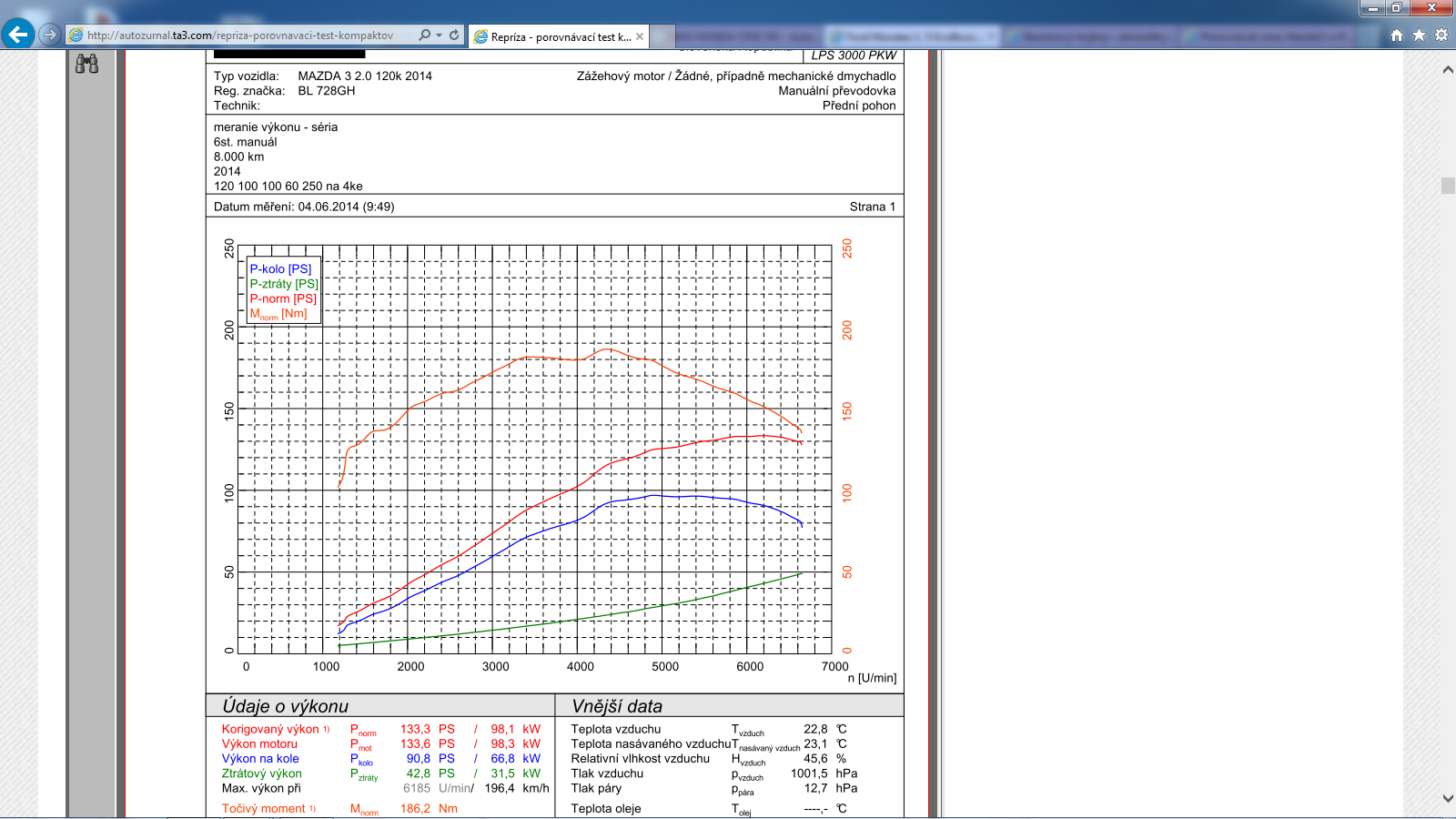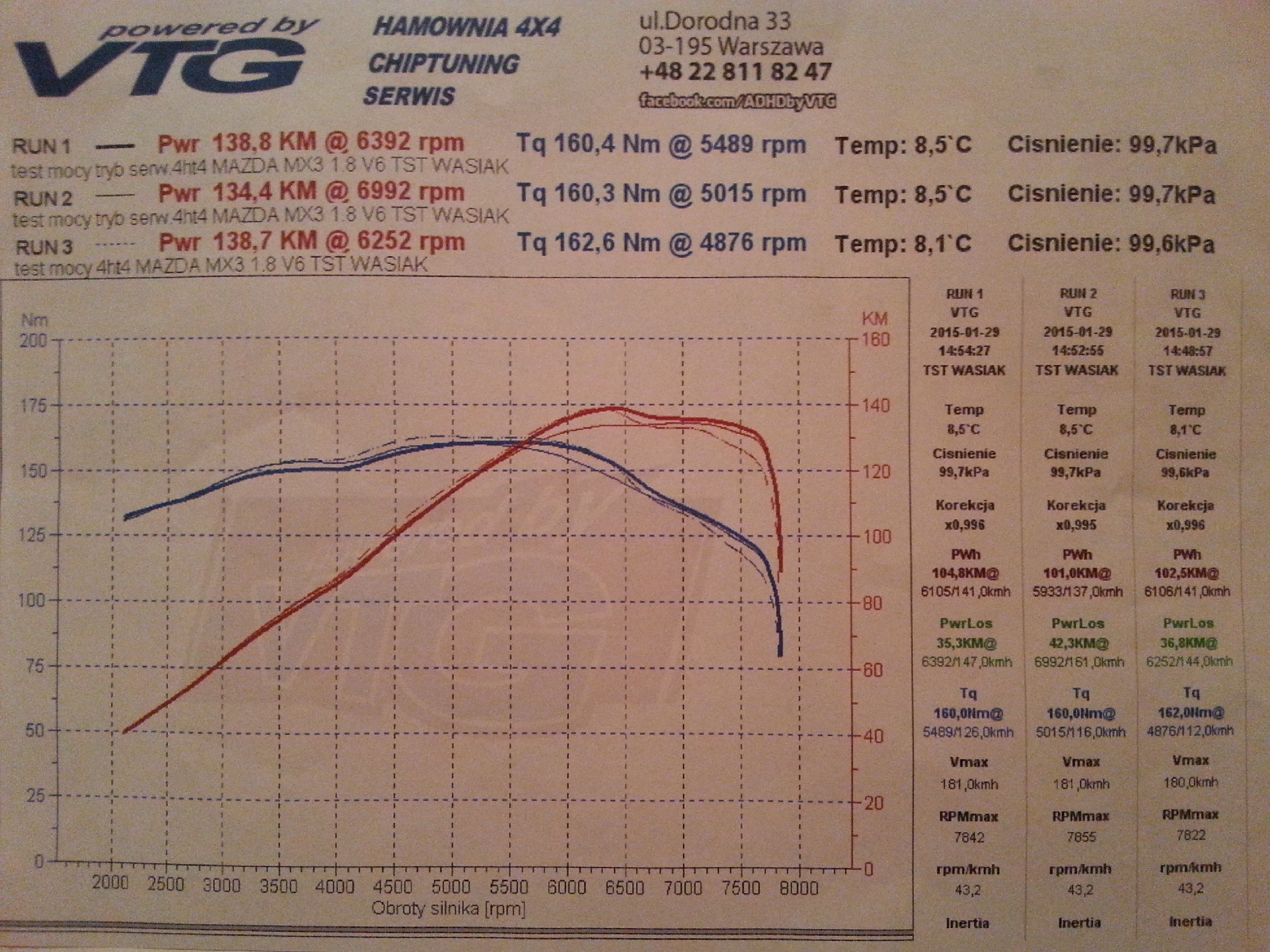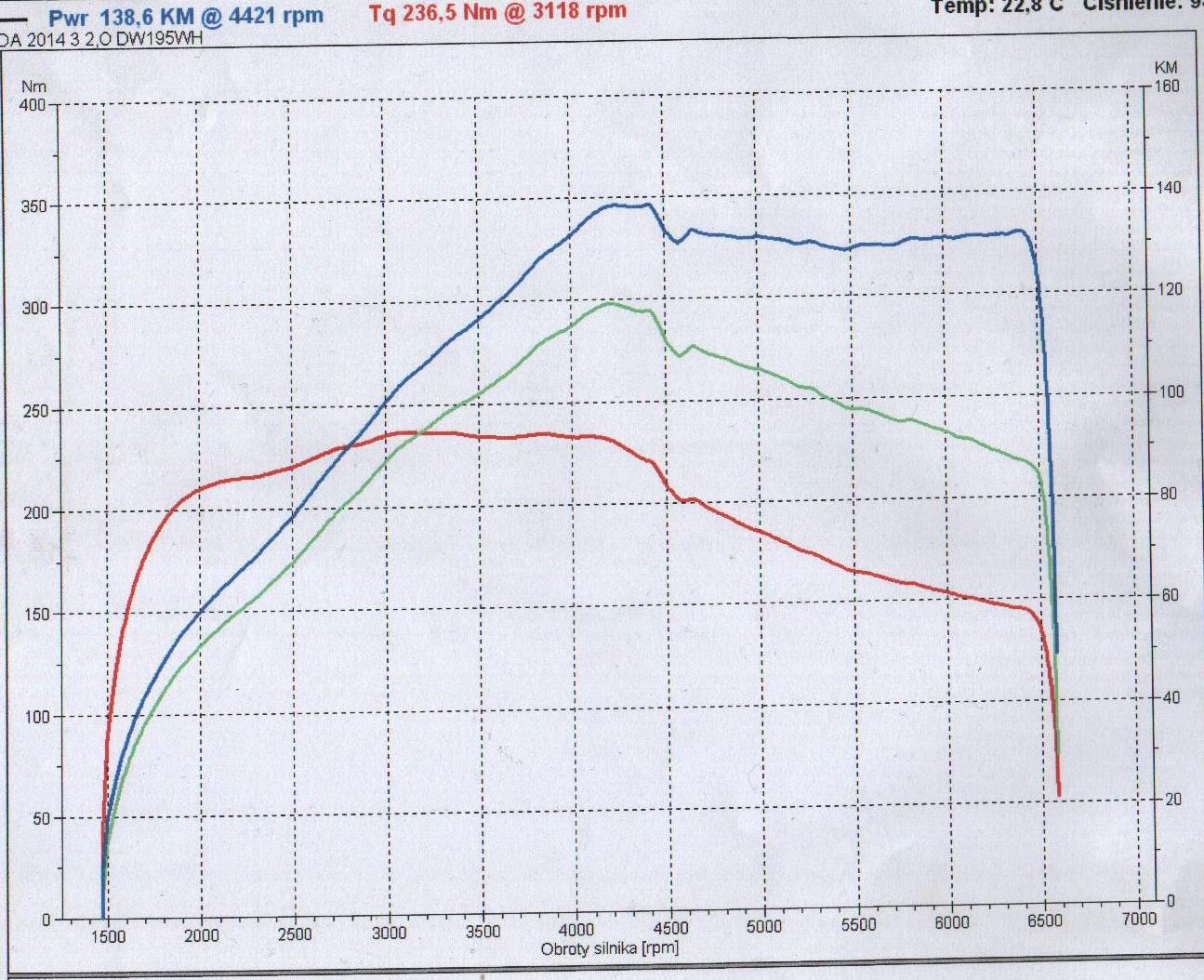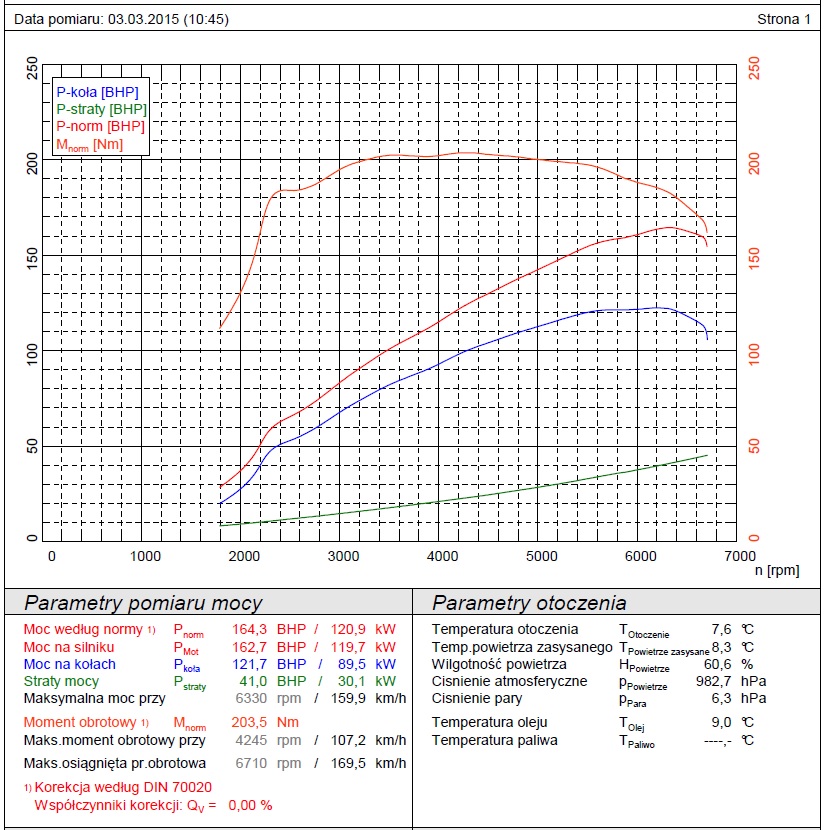 Auto: Mazda5 2.0 benzyna 145KM/185Nm 2006r. Modyfikacje: filtr powietrza (wkład SIMOTA) Wynik pomiaru: 147,5 KM/194,8 Nm Uwagi: auto po kapitalnym remoncie silnika (nowe pierścienie,regenerowana głowica i zawory, honowane tłoki, na dotarciu już po 3000km ) Przebieg: 190tyś km