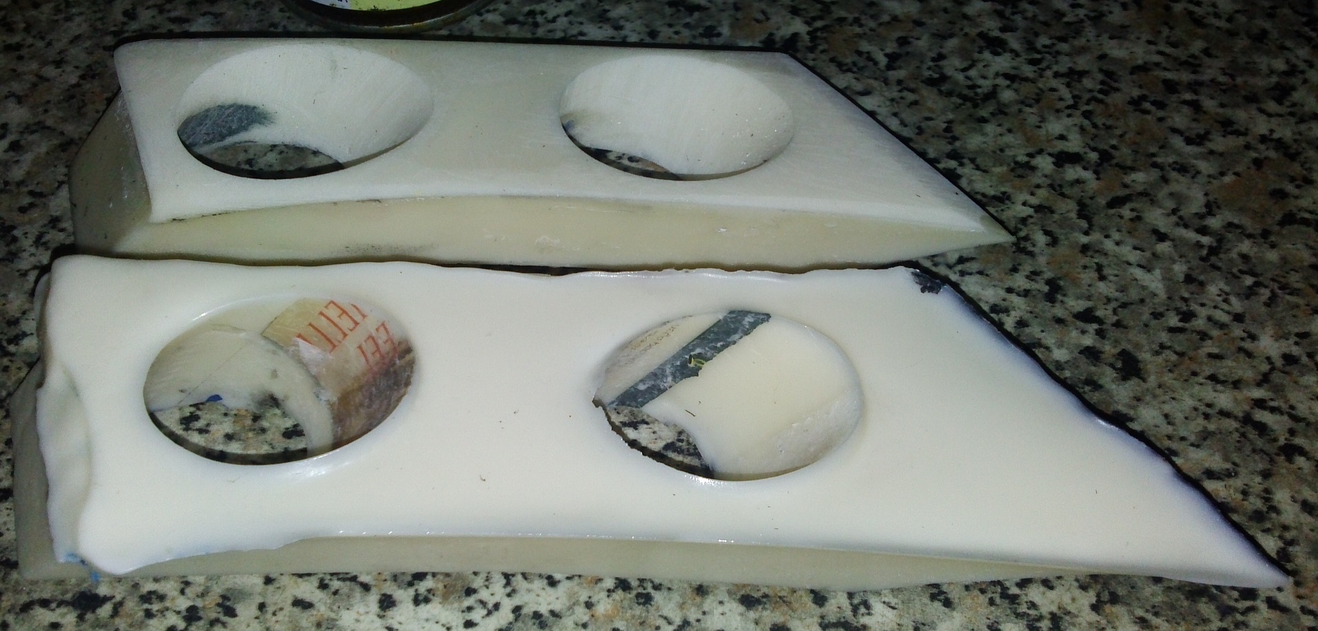 Od razu podpowiem, że należy bardzo dobrze uszczelnić wszystkie szczeliny plasteliną, gdyż żywica przez pierwsze 5min jest mocno płynna i dwa razy wypłynęła mi. Raz zalewając blat roboczy a drugi raz nauczony doświadczeniem podłożyłem styropian po chinolu :)