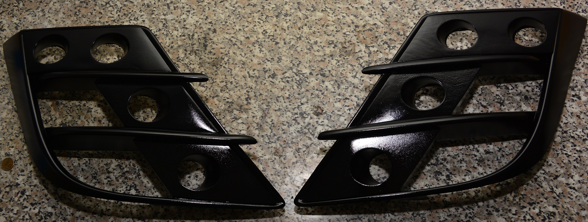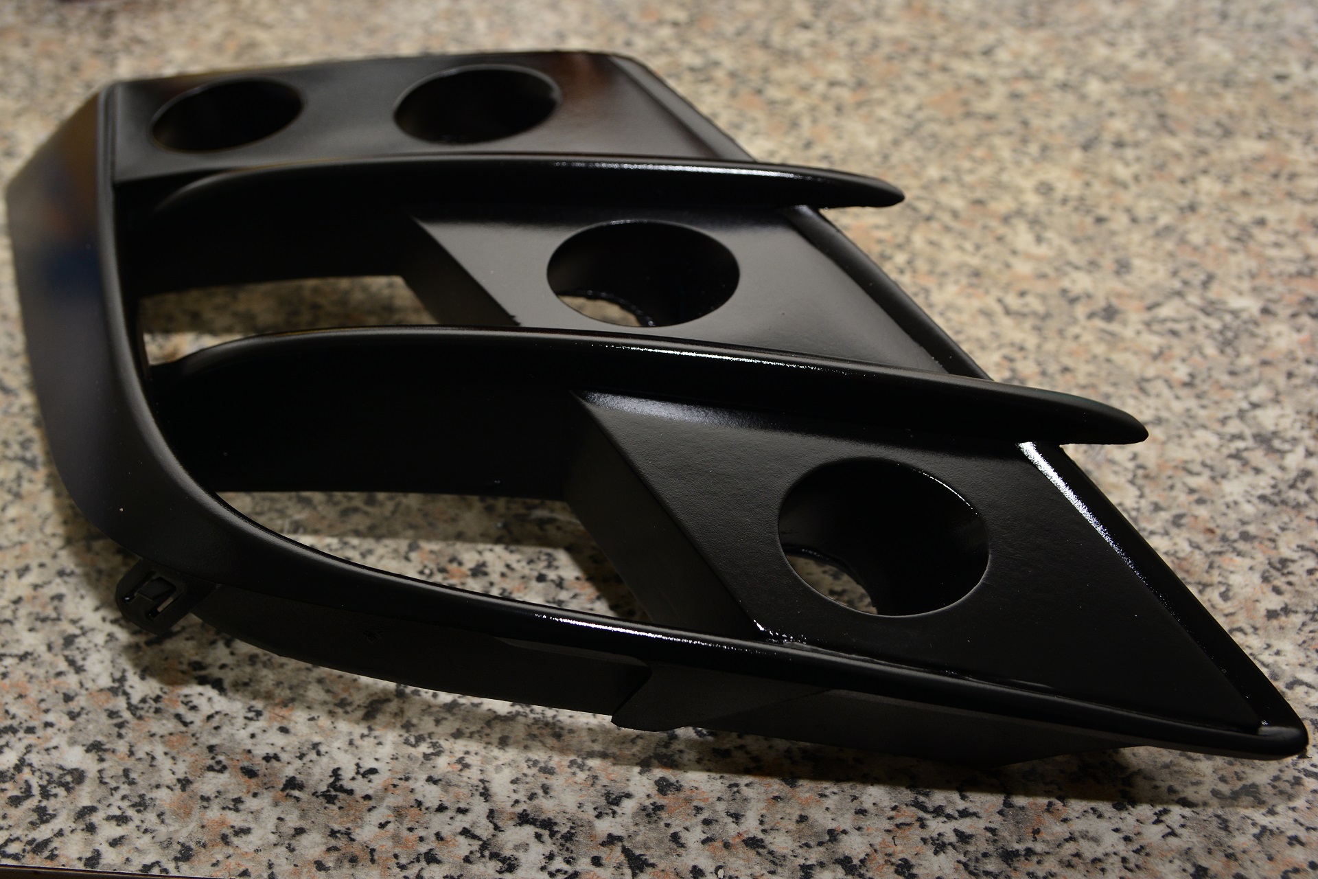 Zakupiłem chińskie zaślepki do zderzaka, aby na nich pracować i zabrałem się do rzeźbienia. Jak się później okazało ma to swoje konsekwencje, gdyż podczas wkładania gotowej ramki okazało się, że zaślepka od strony pasażera ma lekko inny kształt i dolna kształtka lekko się odkleiła, ale nie widać tego zbytnio, więc tak zostanie.