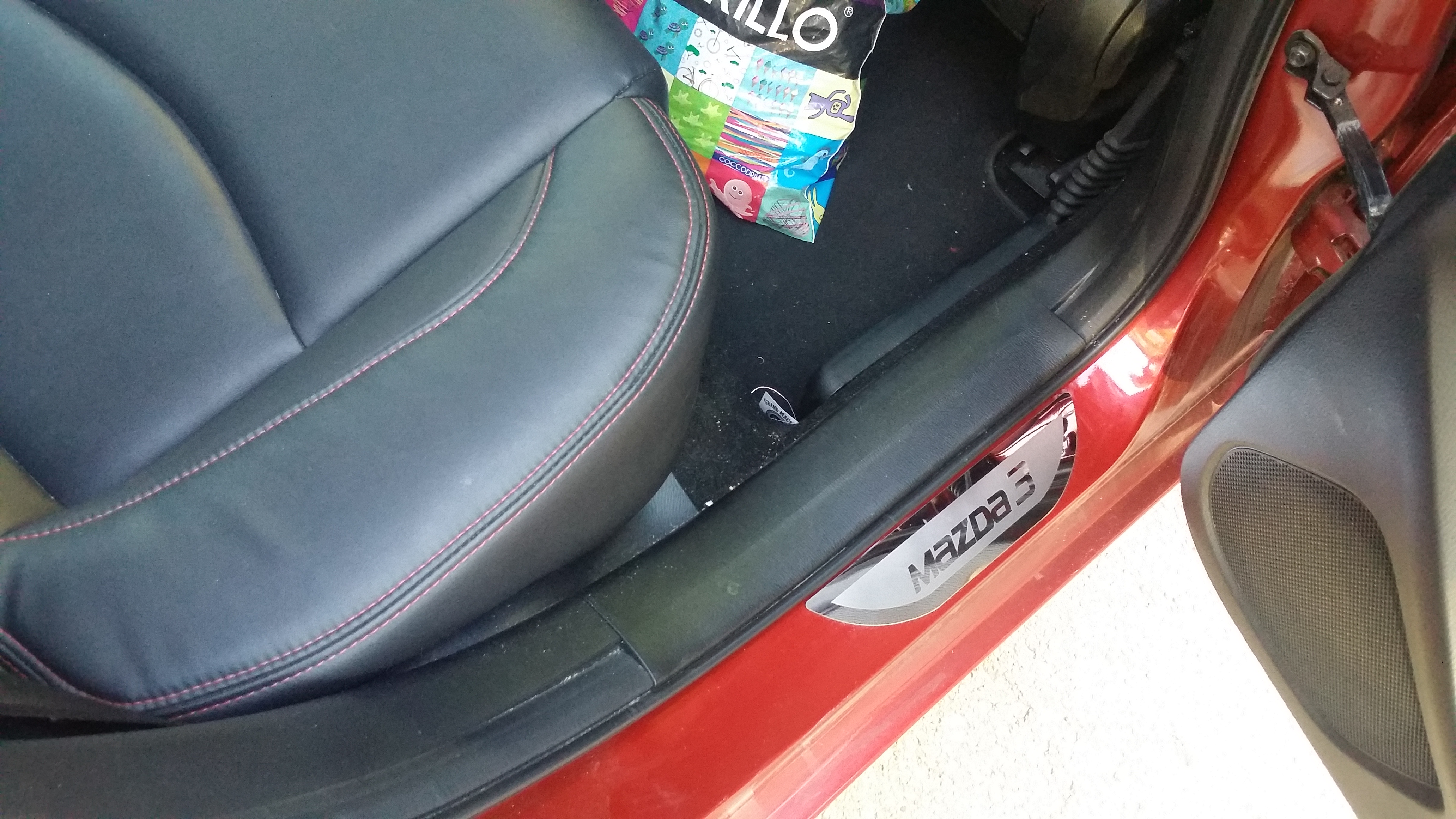 Jako że progi w naszych Mazdach są takie jakby gołe postanowiłem zamówić metalowe nakładki na progi za niecałe 80 złociszy. Myślę, że za taką niewygórowaną kwotę poprawiło to wygląd, przynajmniej tak mi się wydaję