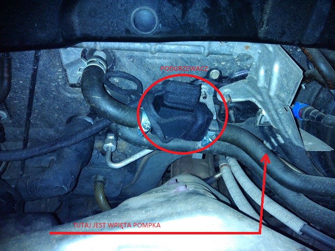 Obecnie ciepło idzie z silnika do kabiny –>podgrzewacz->pompka elektryczna->reduktor.