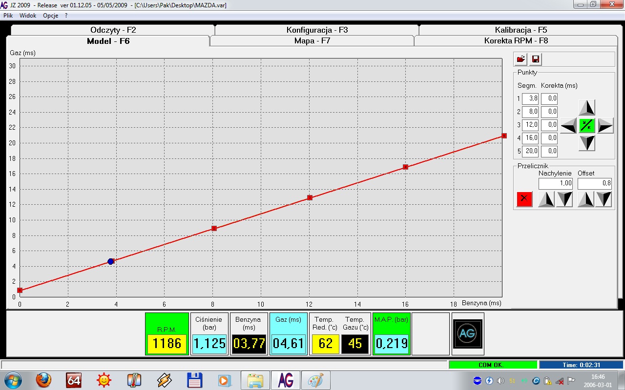 Ven napisał(a):wydaje mi się ze masz za duża różnice na wtryskach u mnie między gazem a benzyna jest różnica około 0,20 ms a Ty masz dużo więcej, sprawdź też ciśnienie gazu bo u mnie utrzymuje się w granicach 1.2 mbar. No ale to może tylko różnica instalacji.