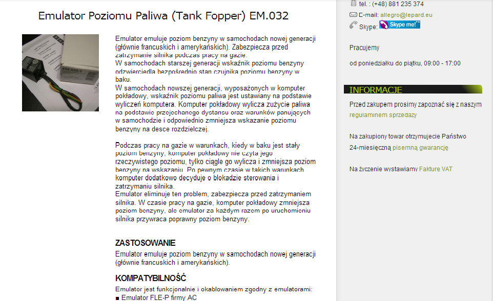 Gazownicy nie wiedzą na jakiej zasadzie działa pomiar poziomu benzyny w niej (twierdzą, że w jednych modelach jest pływak a w innych zlicza komputer, czy jakoś tak), wspomnieli coś o montażu emulatora.