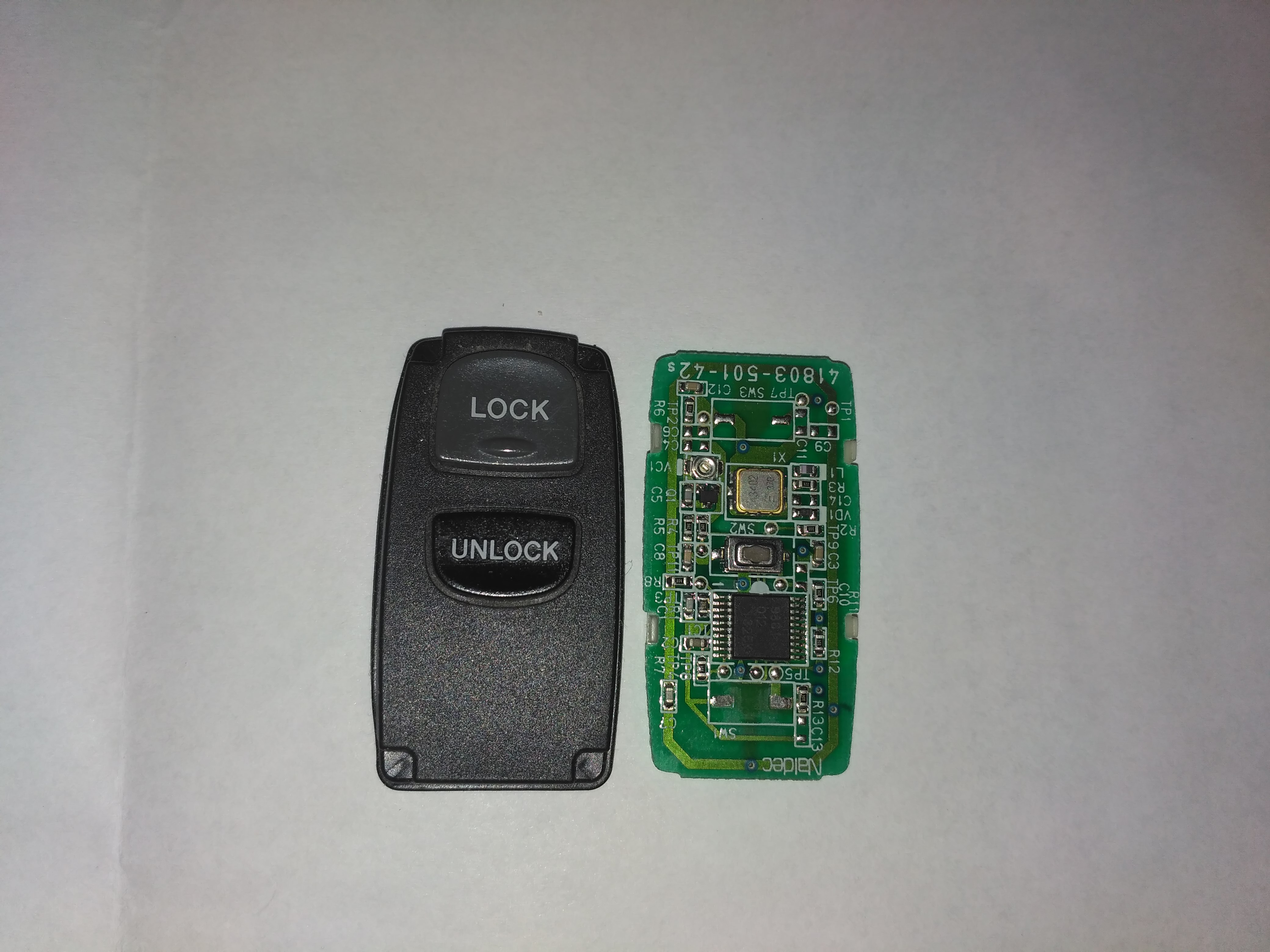 Witam, od tygodnia jestem posiadaczem Mazdy 2. Mam delikatny problem z pilotem, a mianowicie po rozebraniu go, brakuje pod przyciskiem LOCK mikrowyłącznika wlutowanego w płytkę drukowaną, bądź jakiejś zworki pod gumką przycisku. Jak ktoś ma taki pilot, to będę wdzięczny za zdjęcie lub chociaż opis (zdjęcie będzie lepsze). Dodam, że przycisk UNLOCK działa...