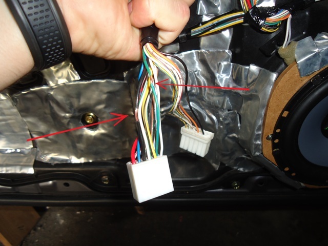 10. W drzwiach pasażera wpinamy się w czarny i niebieski przewód