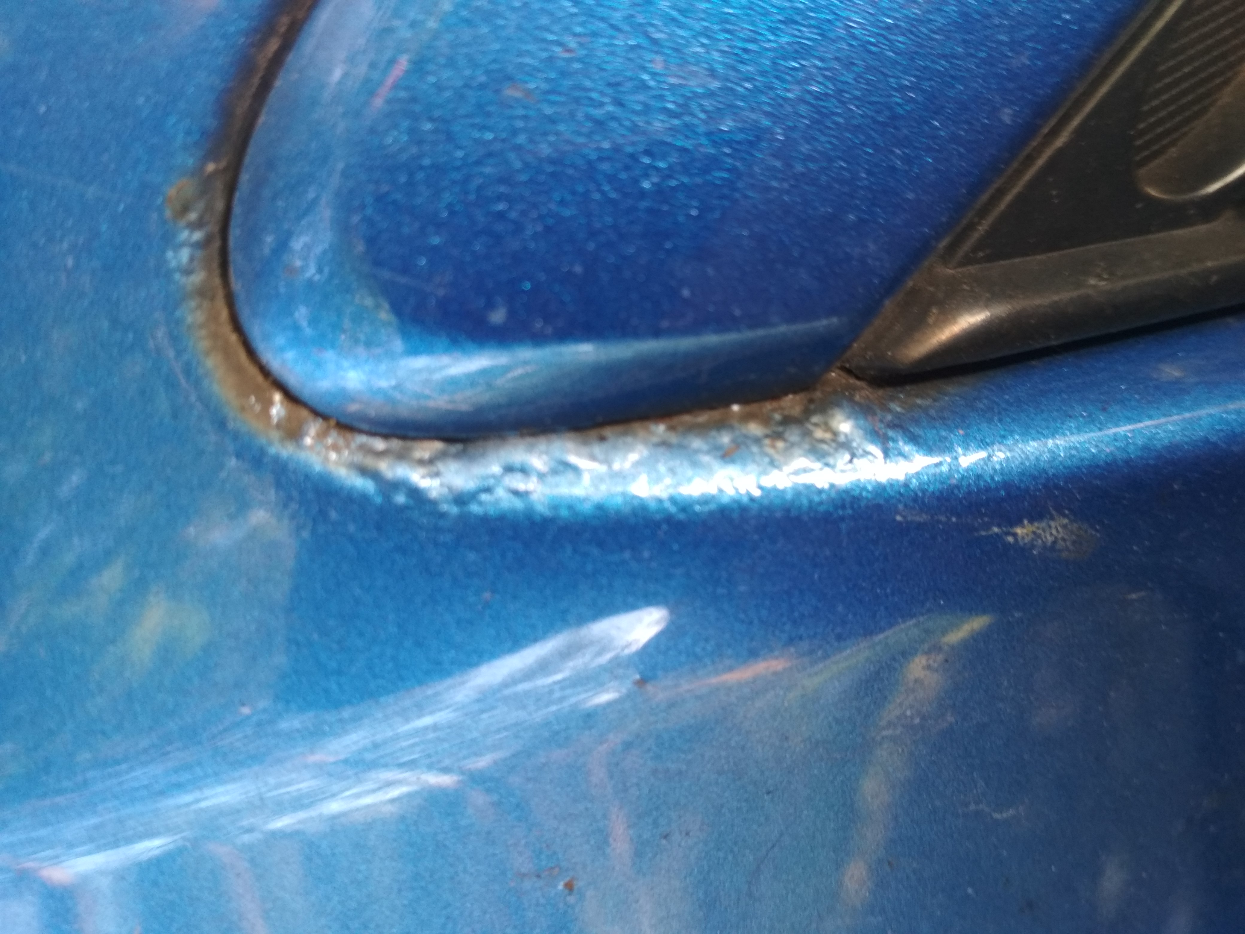 Takich ubytków już nie da się usunąć. Za pół roku i tak wyjdzie, choćby nie wiadomo czym zabezpieczył. Lepszym rozwiązaniem i szybszym jest wymiana elementów