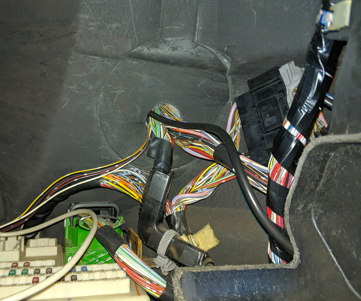 2. Wybieramy miejsce przeprowadzenia kabla z kabiny do komory silnika. Ja uznałem, że najlepszym rozwiązaniem będzie przeprowadzenie kabla za schowkiem.