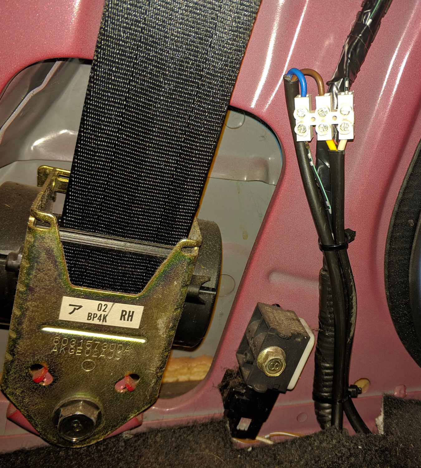 Całość podłączyłem do wiązki idącej do lewych tylnych drzwi. Efekt końcowy jest taki, że kontrolka otwartych drzwi na zegarach świeci się gdy którekolwiek z drzwi/maska/klapa bagażnika są otwarte, a gaśnie, gdy wszystkie są zamknięte.