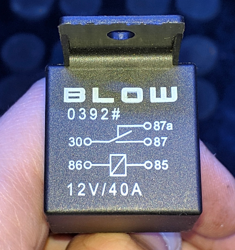 5. Podłączamy przekaźnik. Należy upewnić się które piny są ze sobą połączone bez podania 12V. W moim przypadku jest to pin 30 i 87a. Do nich podłączamy końcówki kabla. Piny 85 i 86 podpinamy do zasilania oświetlenia.