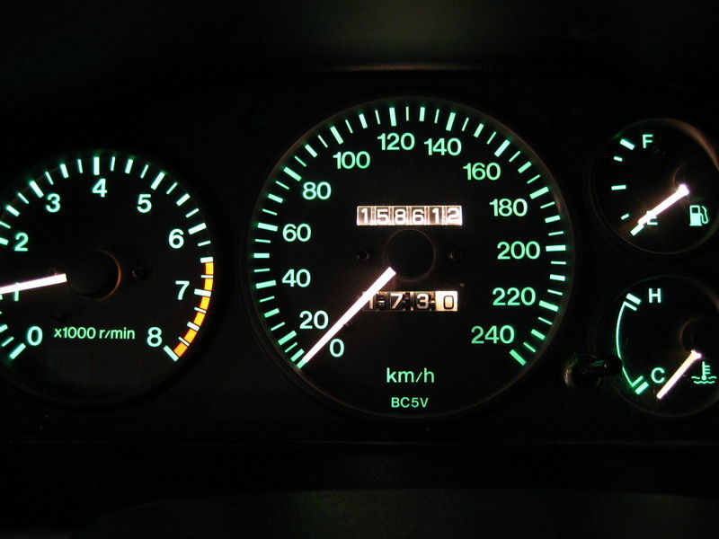 A mnie się tam zielony kolor podoba, jest to chyba najlepszy kolor do podświetlania deski rozdzielczej i zegarów – najmniej męczy wzrok, poza tym wygląda też ładnie. Nie rozumiem ludzi, którzy zmieniają go na czerwony albo niebieski... :|