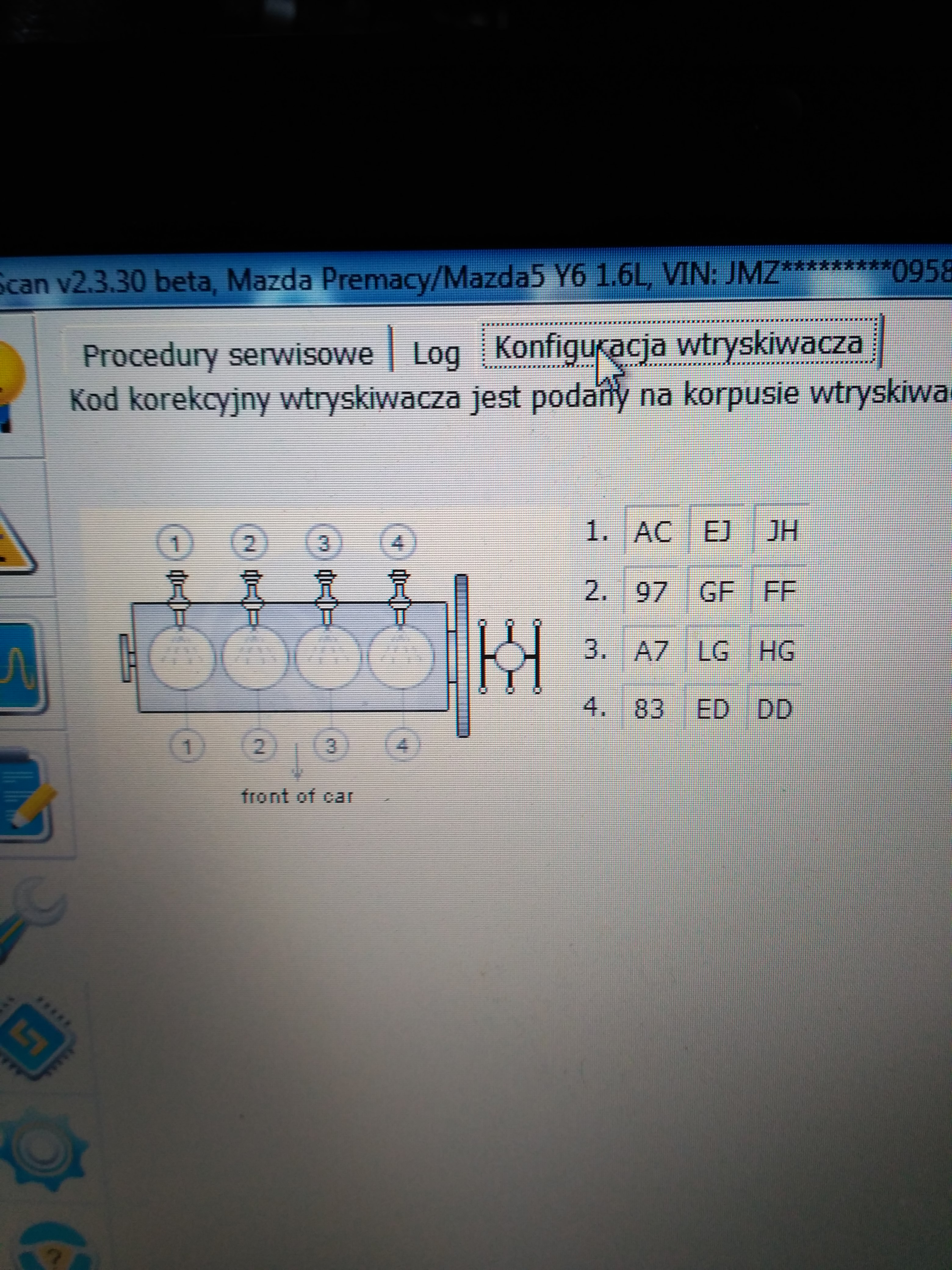 Forscan umożliwił mi podejrzenie kodów korekcyjnych wtrysków. Poniżej foto.