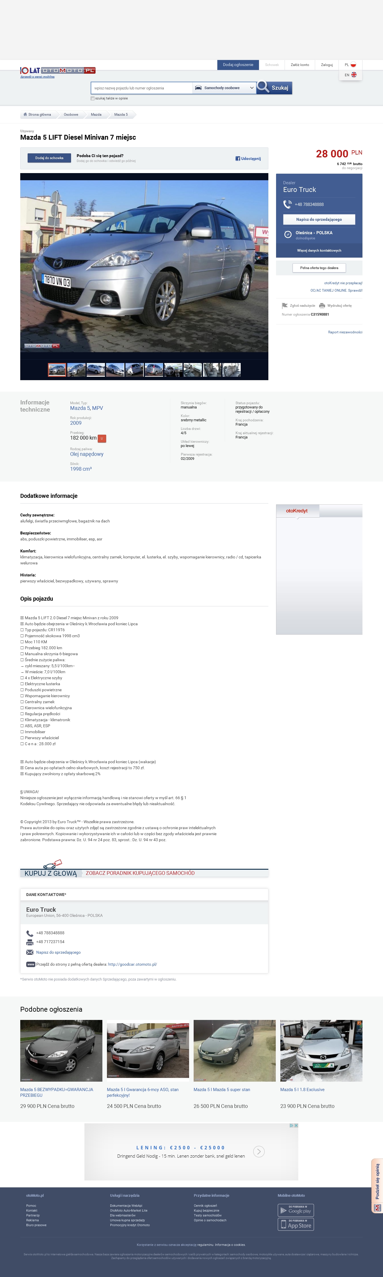 Mazda5, JMZCR19T600331418, (otomoto: C35024885), Euro Truck Oleśnica, 788348888.
