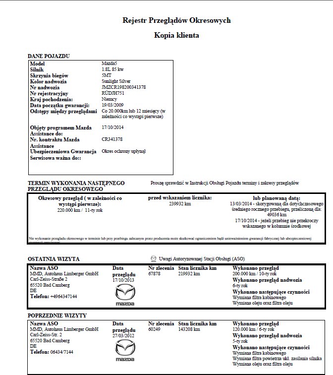 W ofercie przebieg 138 000 km w rzeczywistości 17/10/2013 miało 219932 km .
