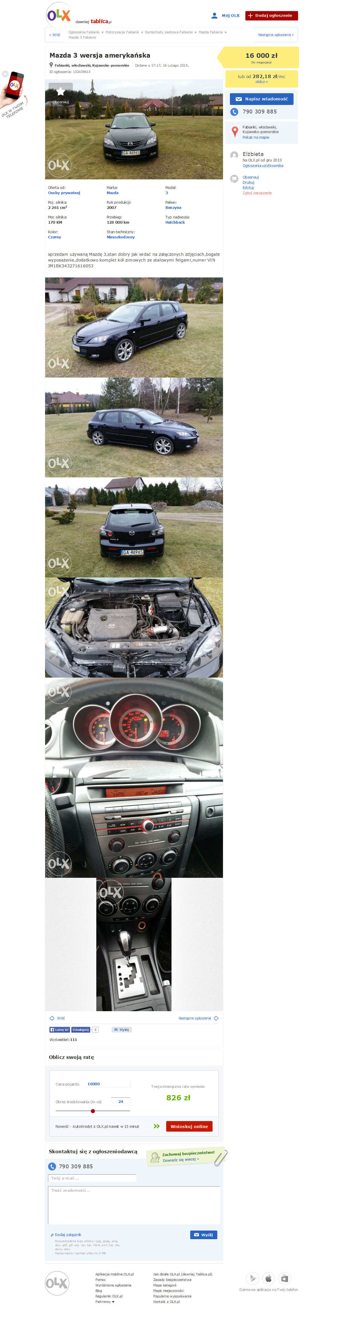 Mazda3, JM1BK343271616053, (olx: 132439413), oferta prywatna Fabianki, 790309885.