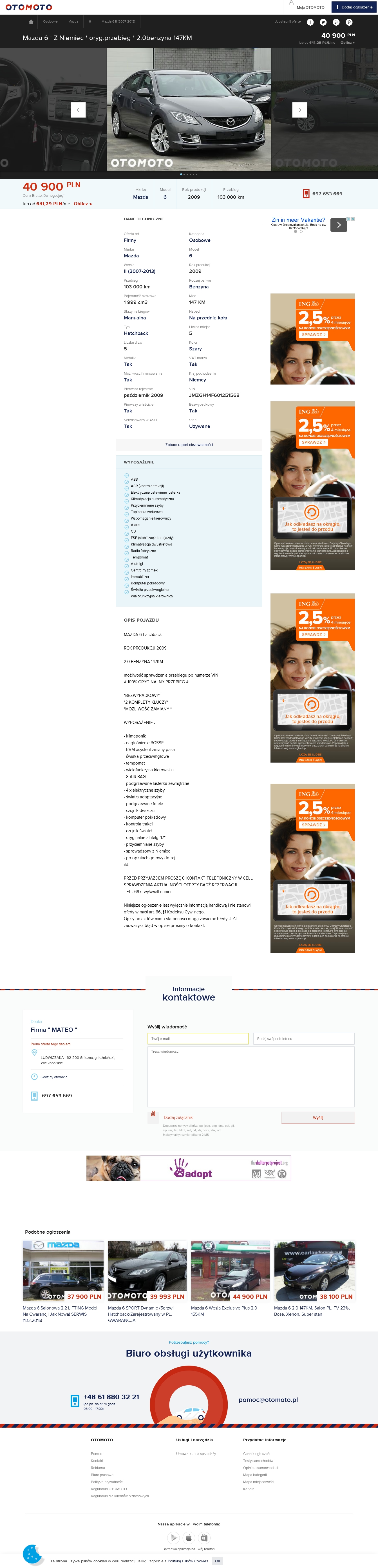 Mazda6, JMZGH14F601251568, (otomoto: 4036110272), Mateo Gniezno, 697653669.