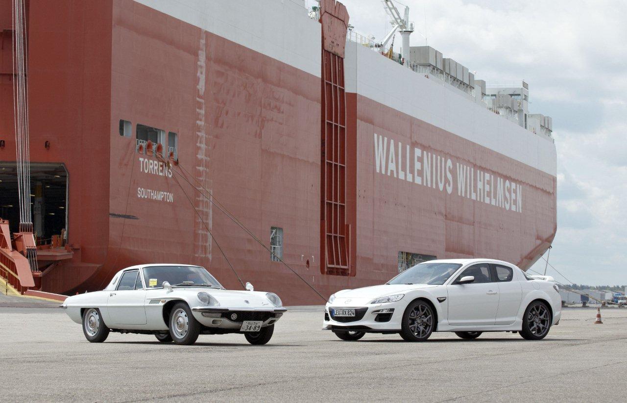 Szczególnie urzekające i niespotykane jest zdjęcie na górze – zeszłoroczny, światowy zlot Mazd Cosmo w Niemczech, u Frey'a. 14 z nich specjalnie przypłynęło z Japonii.
