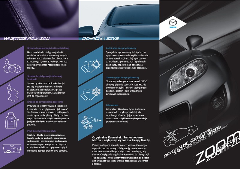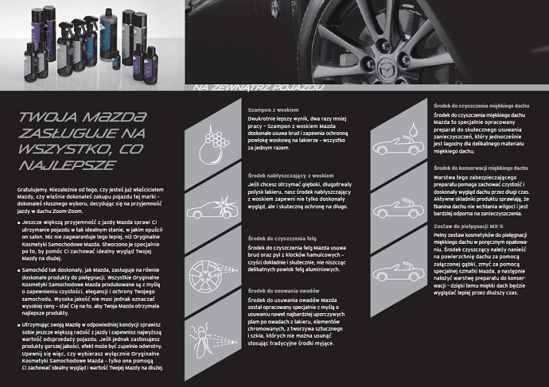mam przyjemność zaprezentować ofertę Oryginalnych Kosmetyków Samochodowych Mazda. Będąc w salonie, możecie zrobić swoim Mazdom dobrze i skusić się na któryś z linii specyfików