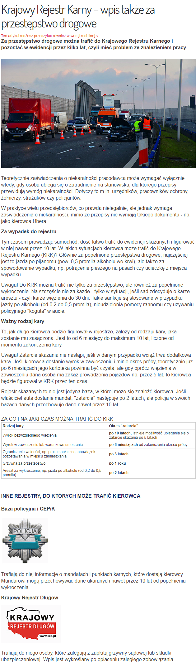 Krajowy Rejestr Karny – wpis także za przestępstwo drogowe: