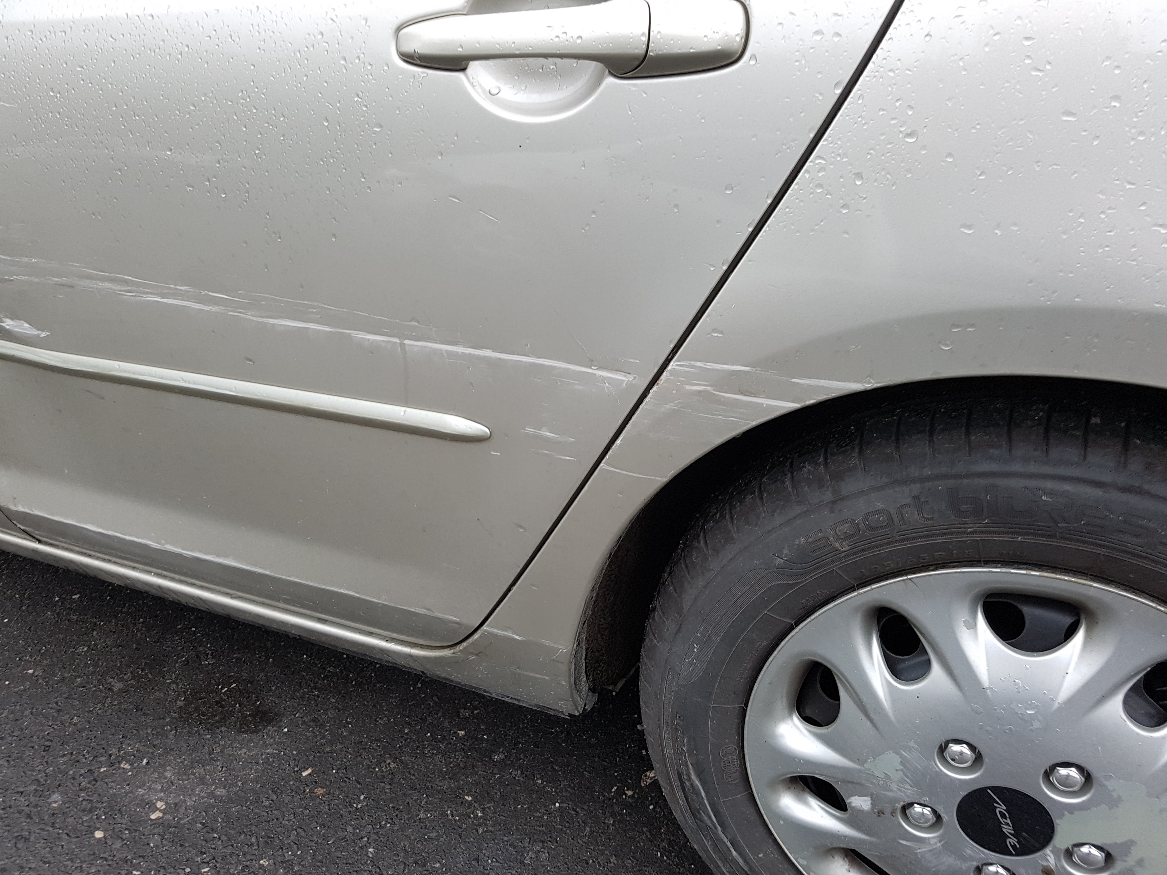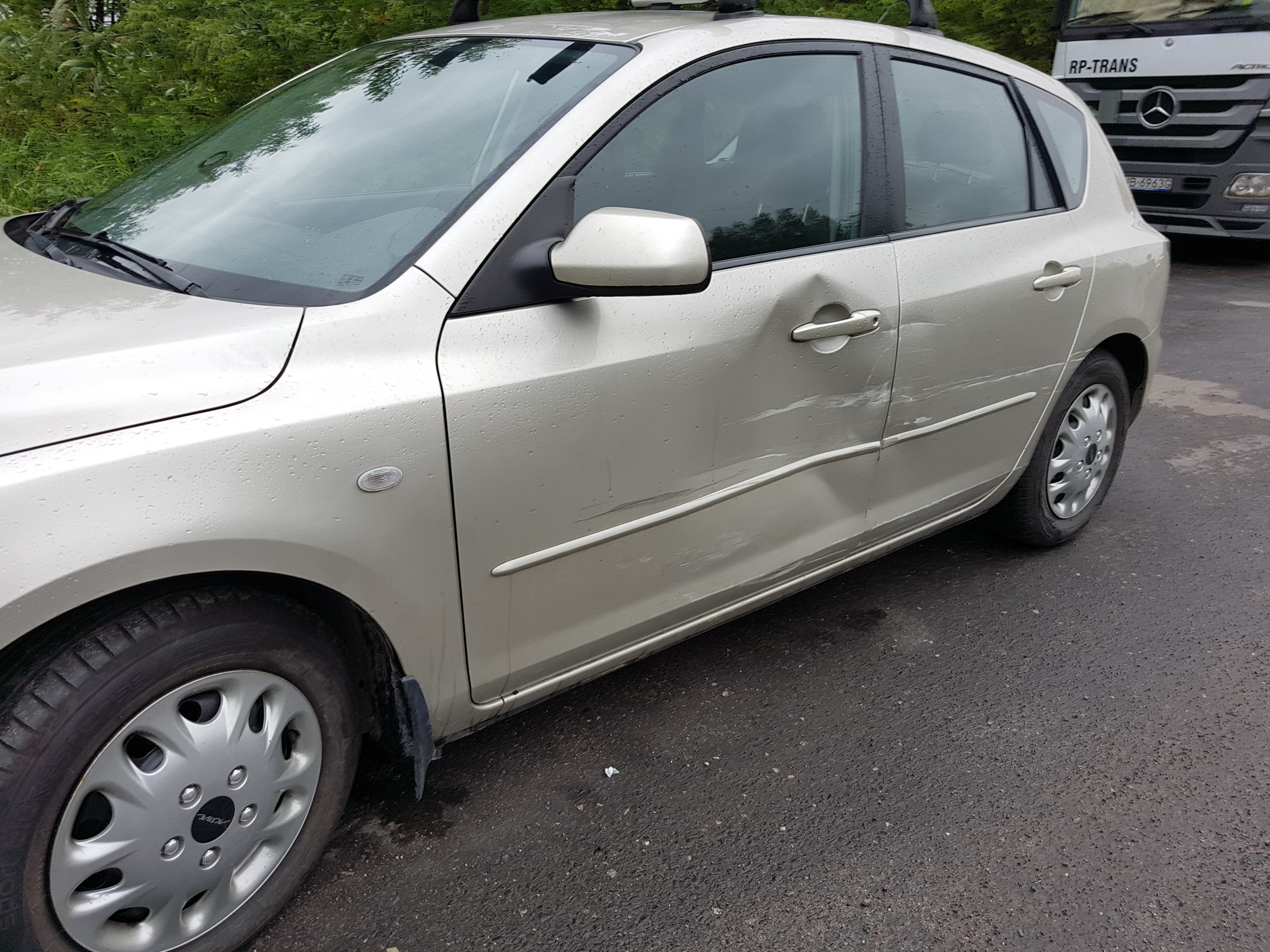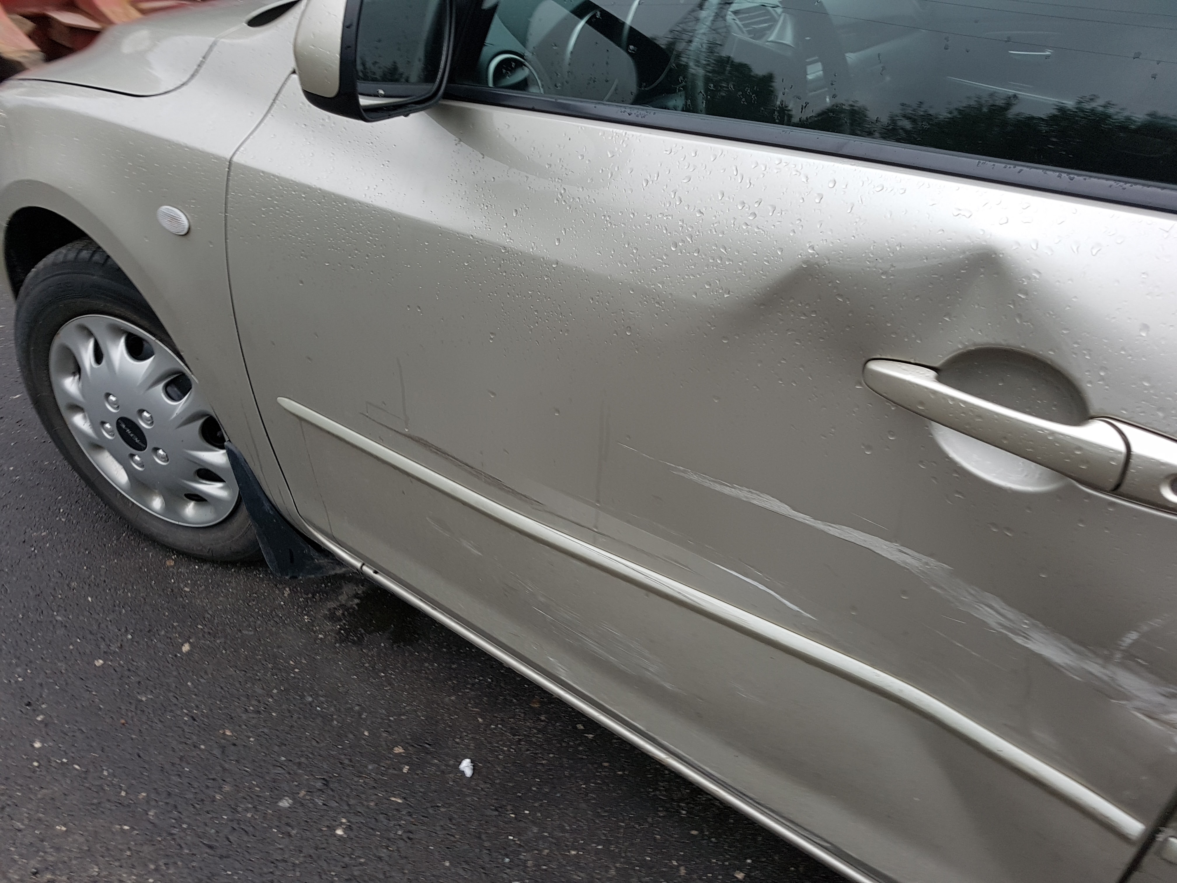 Uszkodzone drzwi kierowcy- do wymiany, i przerysowane drzwi tylne