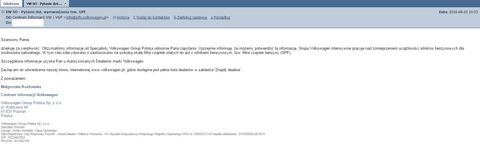Volkswagen wprowadza DPF do silników benzynowych!