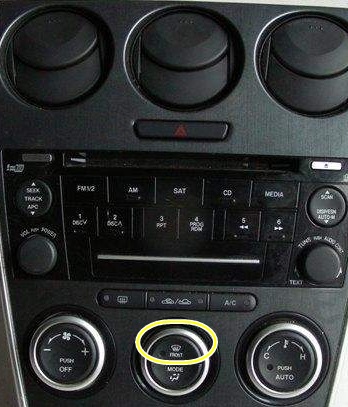 AC – włączamy kompresor klimatyzacji (oziębione powietrze), zaś przycisk AUTO -automatyczną regulację – w tym trybie automatyczna klimatyzacja stara się uzyskać nastawioną temperaturę w pojeździe regulując wlotami powietrza oraz siłą nadmuchu.