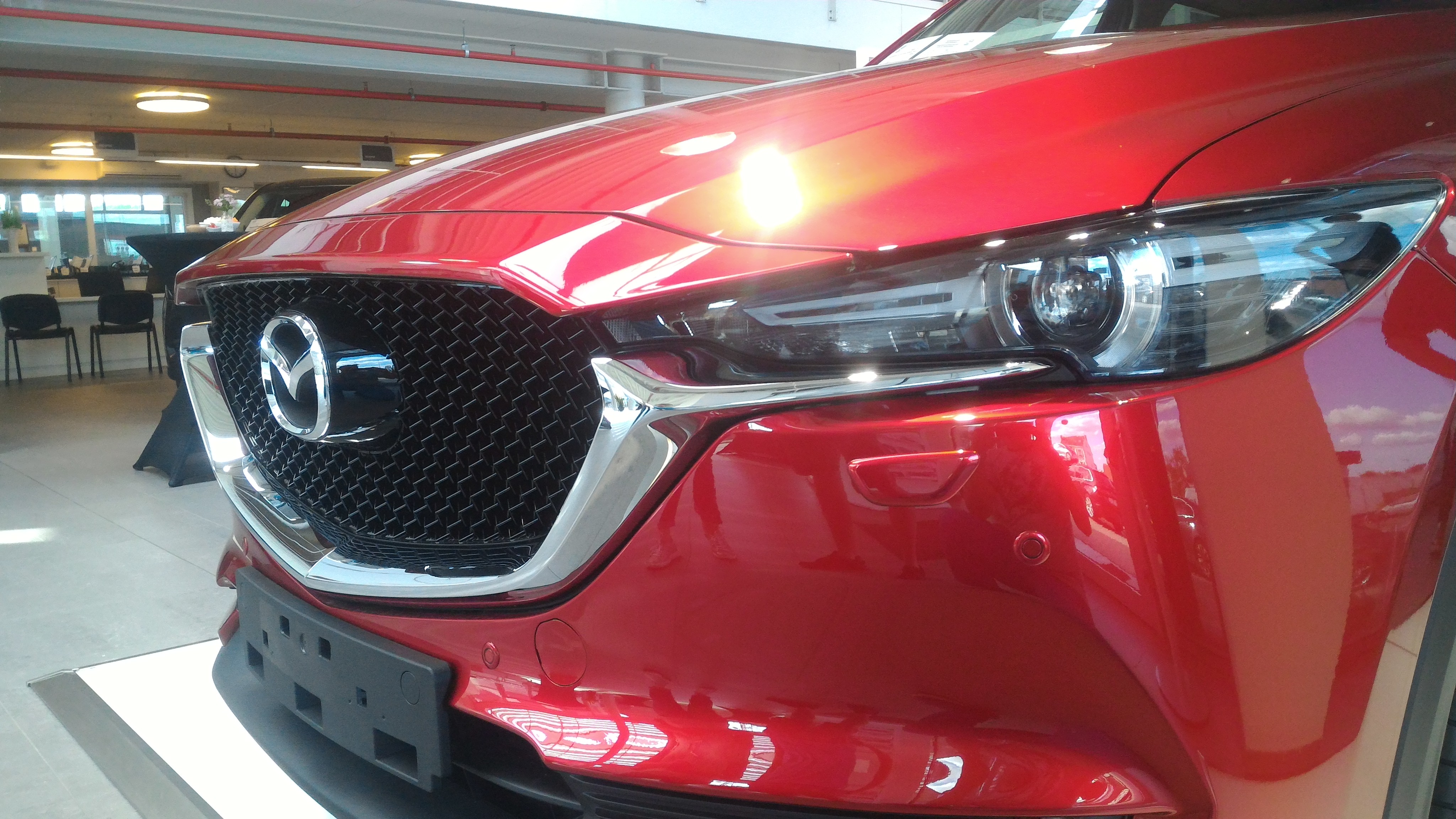 Dostało nowy kolor, Soul Red Crystal, jeszcze bardziej intensywny. Bagażnik (klapa) doczekał się mechaniki, wnętrze dopracowane i bardzo podobne do CX9. Wykończenie i materiały moim zdaniem dają szanse temu autu spory atut z konkurencją. Przód nieziemski tego auta, agresywny i z charakterem. Wyświetlanie HUD na szybie, juz nie na okienku. Z minusów , jak dla mnie ciągle to za małe auto jak na swoje gabaryty, ale takie są SUVy. Patrząc na CX-5 nowa 6 będzie nieziemska