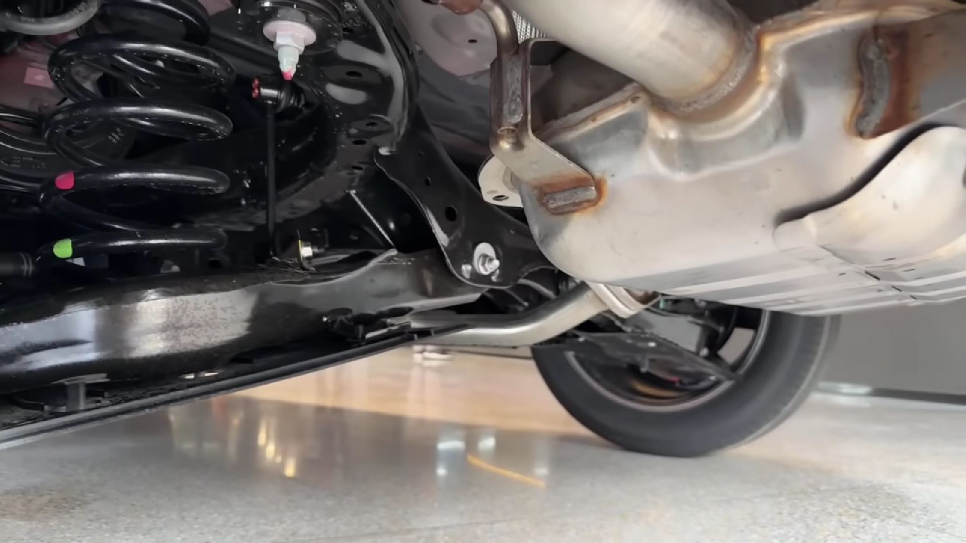 – zardzewiale spawane uchwyty tlumika koncowego w nowym aucie (ktos zajrzal pod auto)