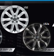 Sprzedawca powiedział, że Mazdy 3 w wersji SkyPassion są dostarczane tylko na felgach w kolorze srebrnym czyli o numerze 152 i oponach Dunlopa (modelu opon nie pamiętam).