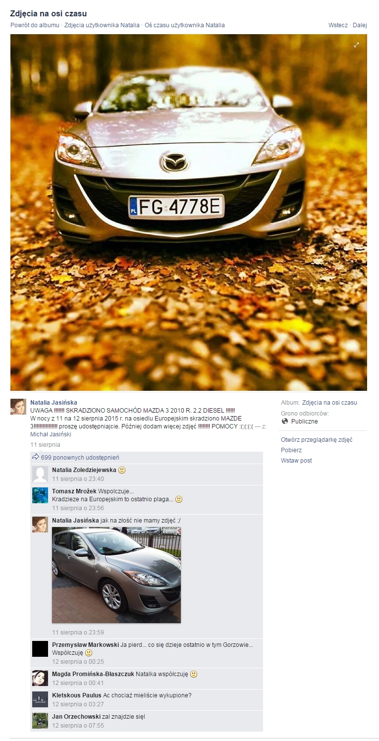 !! 2010 R. 2.2 DIESEL Z 11 NA 12 SIERPNIA OKOŁO 2-3 W NOCY SKARADZIONO SAMOCHÓD MARKI MAZDA 3 Gorzów Wielkopolski Osiedle Europejskie PROSZĘ UDOSTĘPNIAĆ nr Rejestracyje FG4778E