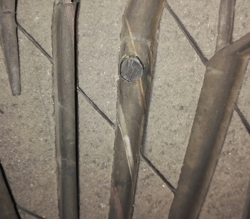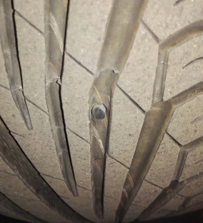 Niestety zmierzyć bieżnika mi się dokładnie nie udało nie mam obecnie przy sobie narzędzi typu suwmiarka. Na oko wygląda, że opony z przedniej osi są zużyte już trochę a na tylnej praktycznie jak nówki. Dwóch opon raczej teraz nie wymienię bo to trochę drogo wyjdzie (900zł). Z decyzją o wymianie tej jednej wstrzymam się chyba do momentu dokładnego zmierzenia bieżnika. Załączam zdjęcia naprawionego uszkodzenia. Powinno to tak wystawać czy ściąć ten kołek na równo z rowkiem bieżnika? Co o tym myślicie? Wygląda ta opona na bezpieczną do jazdy? Ja jeżdżę raczej max 160km/h raz zdarzyło mi się 190 km/h.