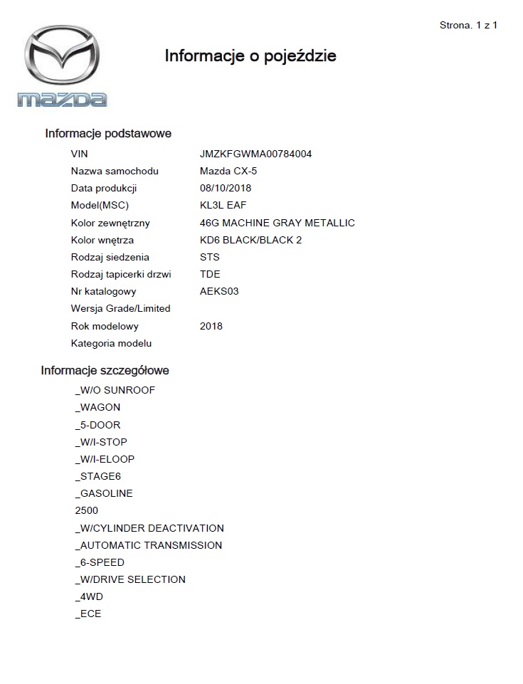 Od chwili wypatrzenia mojej Madzi CX-5, chciałem poznać datę jej narodzin. W odróżnieniu od jej sióstr wysyłanych na Bliski Wschód, pozostałe nie lubią się tym chwalić na naklejkach. Moja Madzia tej skrywanej daty nie ujawniła też ani kolegom z Forum, ani pracownicy Mazda Motor Poland, ani doradcom w ASO, ani nawet ruskim serwerom.