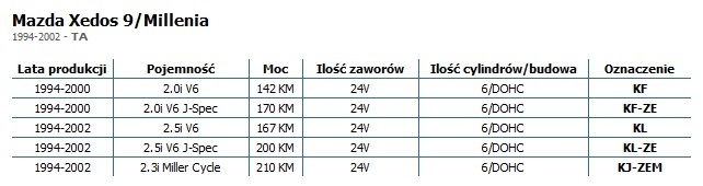 Oznaczenia / symbole silników występujących w TA (xedos9/Millenia)