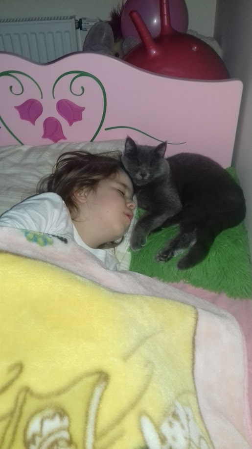 Przesympatyczny zwierzak z niego. Cierpliwość do dzieci ma anielską póki co, choć nie ma łatwo. Ostatnio córka przychorowała i cala Jej uwaga skupiła się na nim. Jak widać po fotach, momentami wyszło zabawnie do łez.