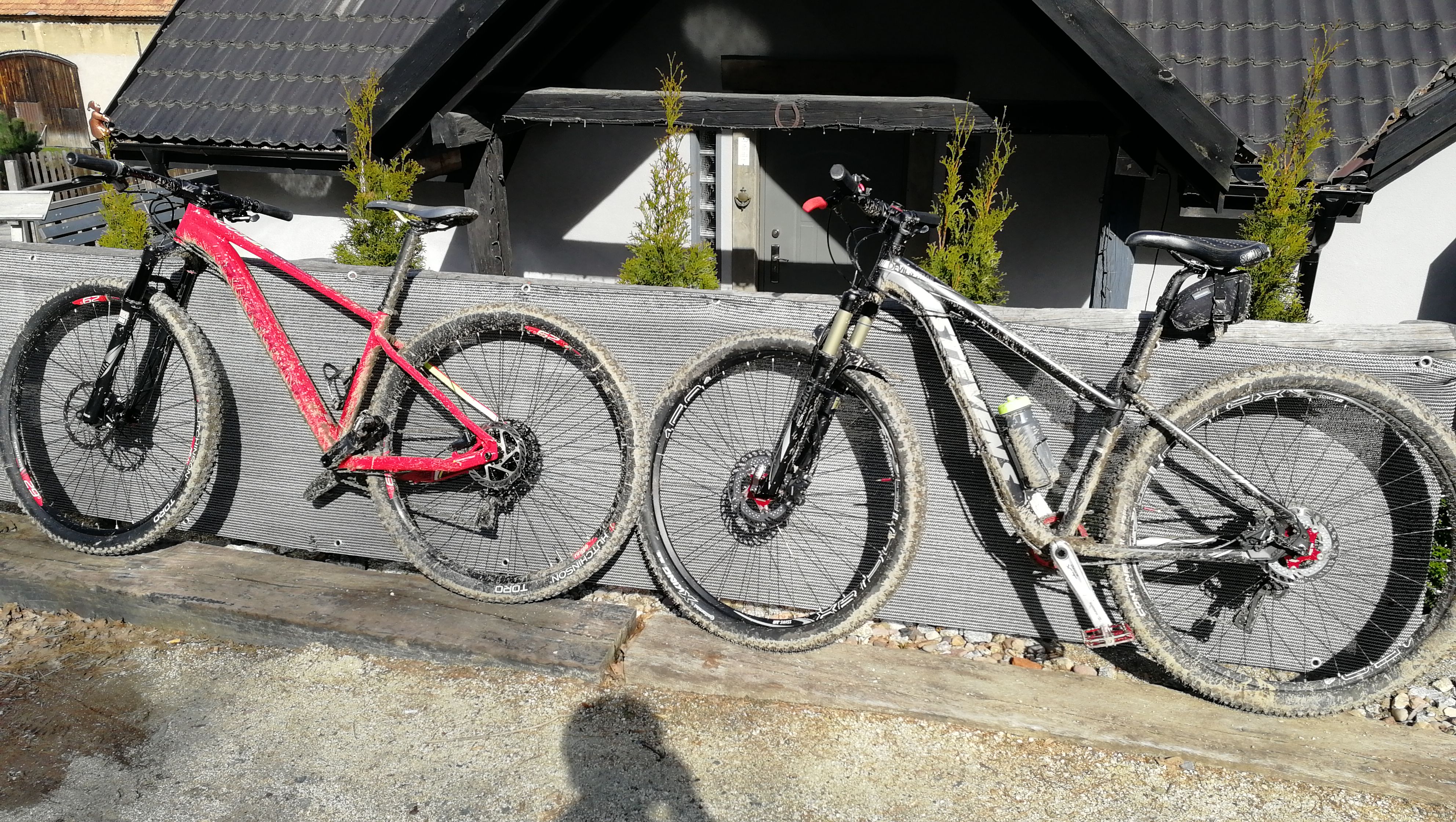 Udało się jednak dojechać i zaparkować oraz 2h pojeździć po lesie. Było fajnie: ciepło i mokro co widać po ubłoconych rowerach.