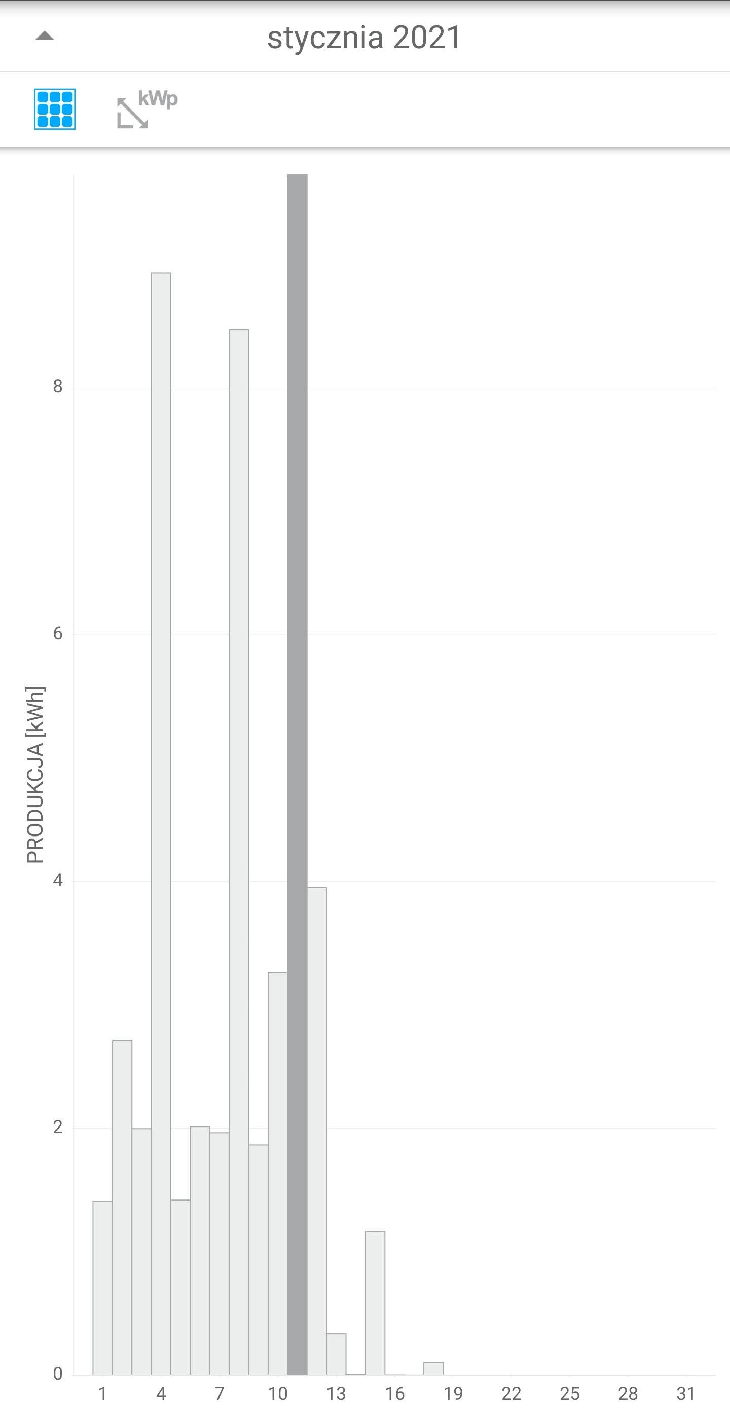 Jak natomiast wygląda produkcja w dzień pochmurny (cały dzień chmury bez przejaśnienia) gdy "dzień" trwa tak jak teraz od 7:30 do 16:00, czyli około 8h gdyby porównać to do 8godzin dobrze nasłonecznionych (najlepiej też zimą, gdy kąt padania promieni jest podobny)?