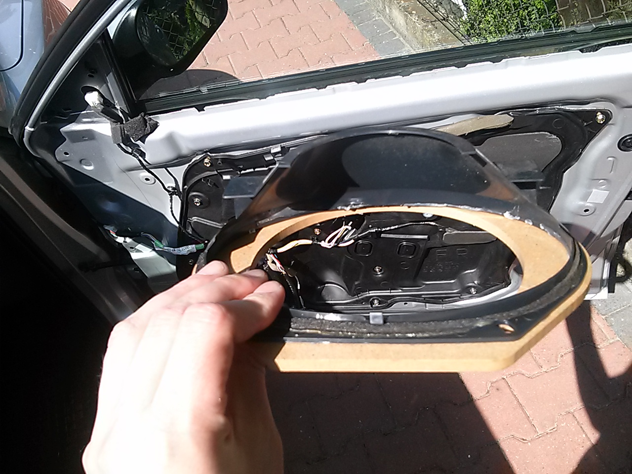 Dorzucam jeszcze kilka fotek z wygłuszenia plastiku zamykającego komorę drzwi + montaż głośników.