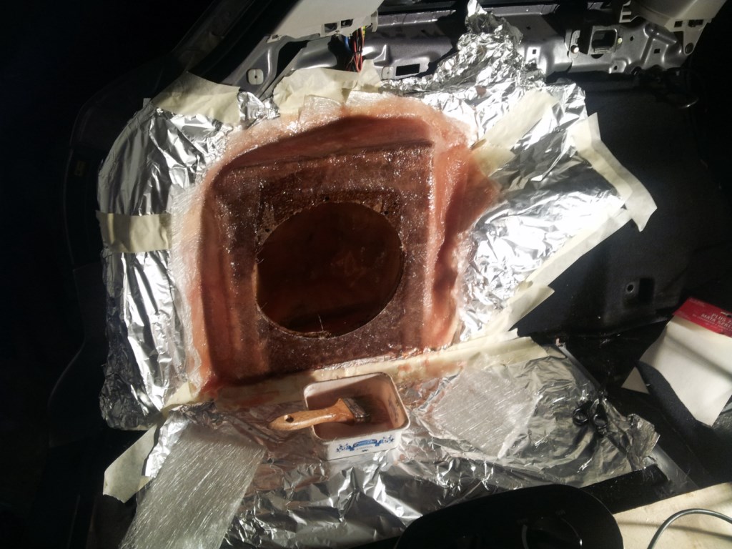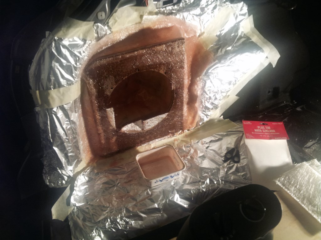 Robiłem już 2 takie zabudowy w Cordobie i powiem Ci, że jak poświęcisz odpowiednio dużo mat i żywicy to nie będzie grało plastikowo – ja w środku dodatkowo wysmarowałem taką pastą bitumiczną.
