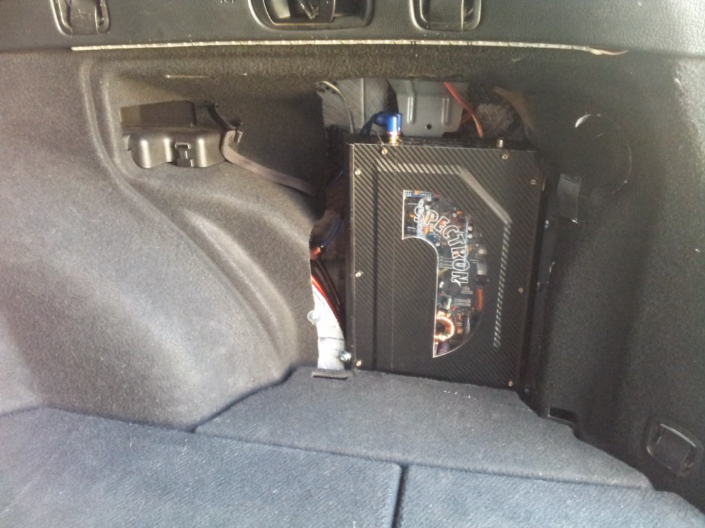Co do kwestii grania , głośnik 700w (robiony na zamówienie) do tego wzmacniacz Spectron czterokanałowy 800w , po odpowiednim zestrojeniu JEST BAJKA