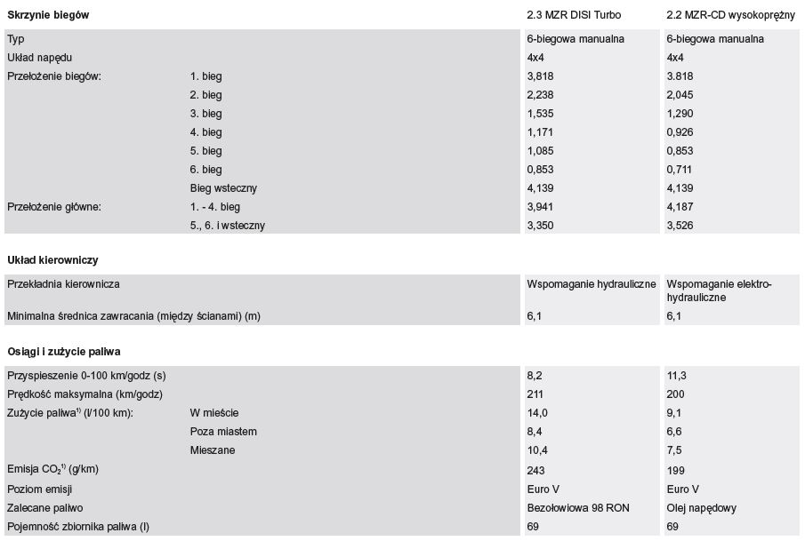 Poniższe dane oparte o dane wersji po face-liftingu