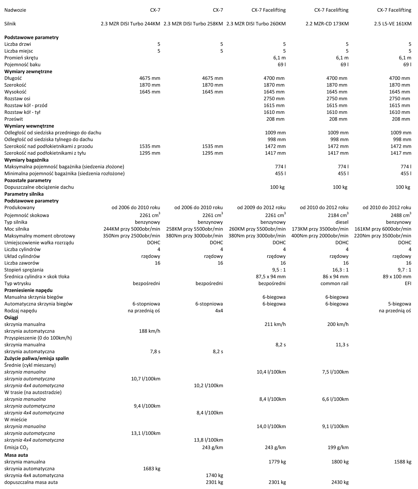 Mazda CX-7 (ER) – Informacje o modelu