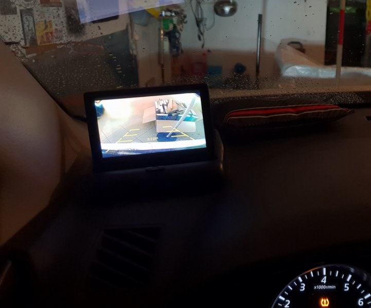 Całość włącza się po naciśnięciu hamulca, mi zależało żeby obraz włączał się automatyczni, ale można zrobić pod guzik.