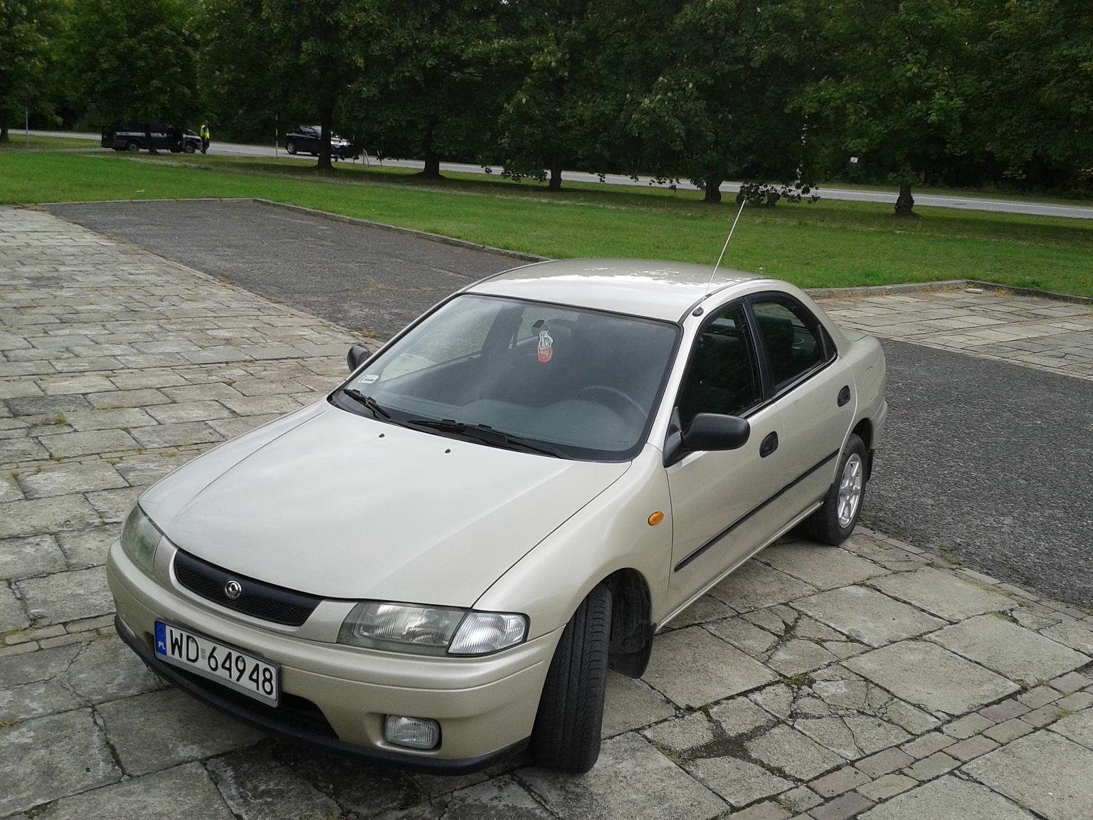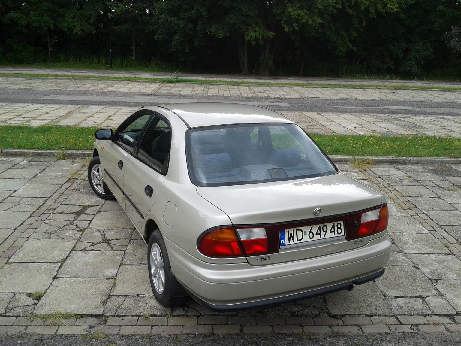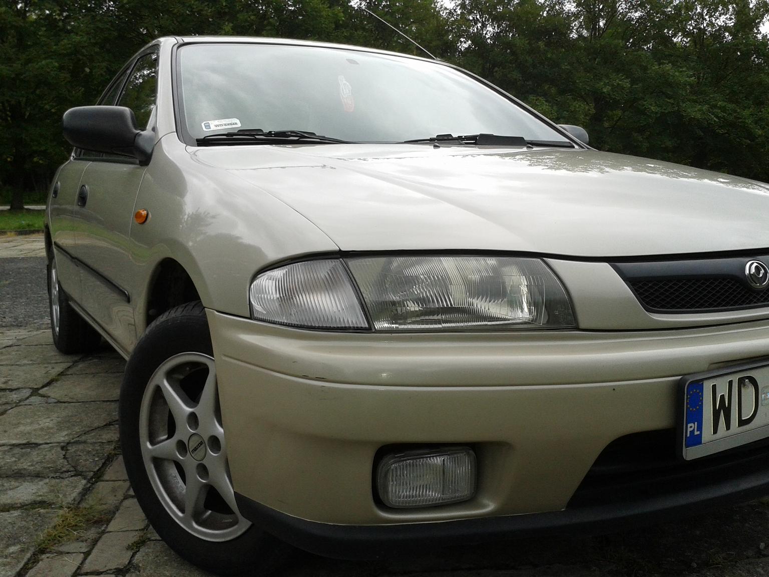 Chciałbym zaprezentować wszystkim moje auto jakim jest mazda 323 wyprodukowana w roku 1997 w dość rzadko spotykanej wersji nadwozia czyli sedan. Mazda wyposażona jest w benzynowy silnik o pojemności 1,5 litra i automatyczną skrzynię biegów. Przebieg auta w tej chwili wynosi niecałe 118 tys. km.