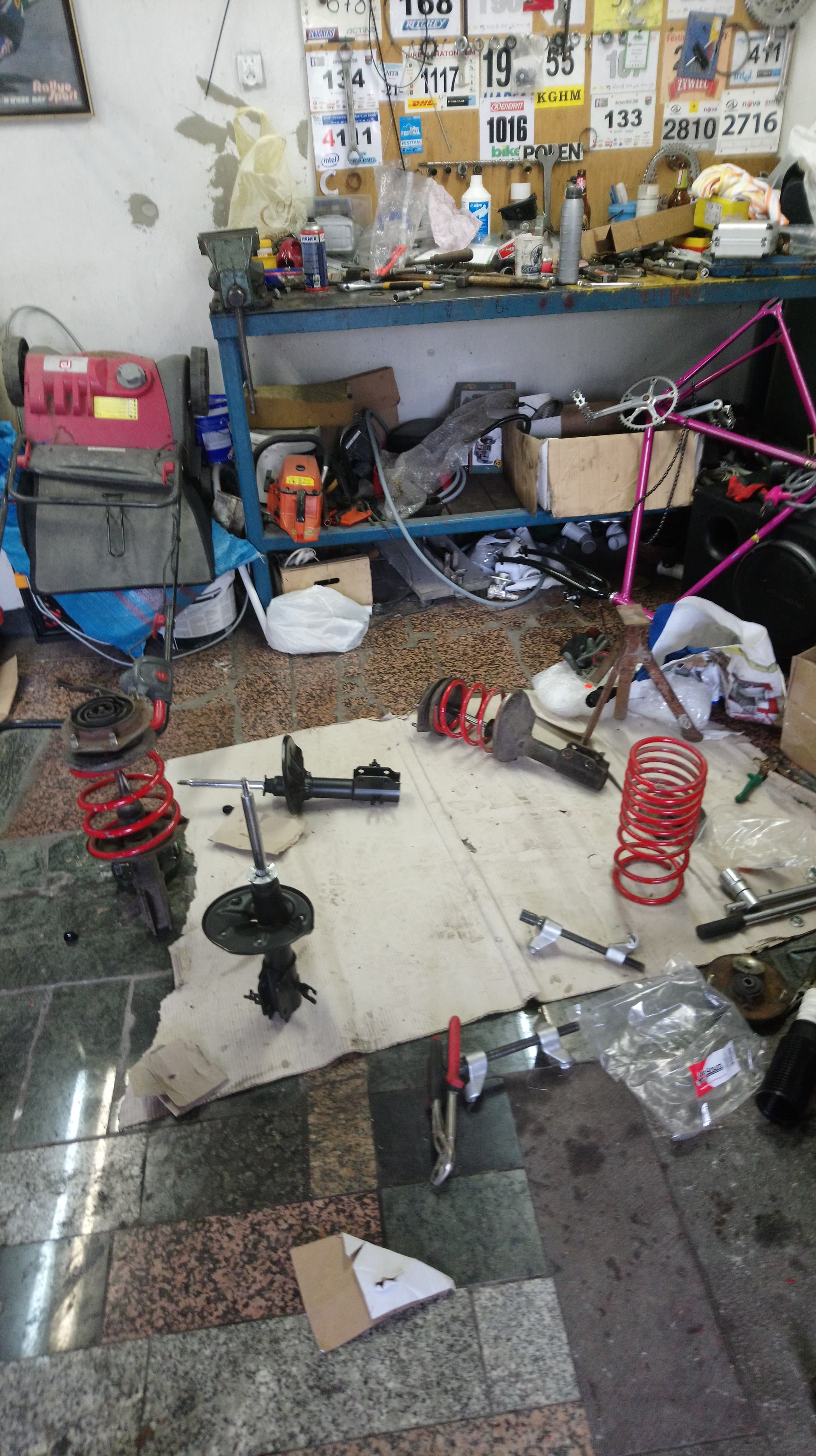 No dobra... czas na konkretnego posta. Zdecydowałam się wreszcie na zakup sprężyn -40mm, a przy okazji na nowe amortyzatory firmy Kayaba, od razu kupiłam też zestaw montażowy na tył i przód oraz dwie poduszki kolumny Mc Persona. I tutaj podziękowania dla perversja za rabat na części