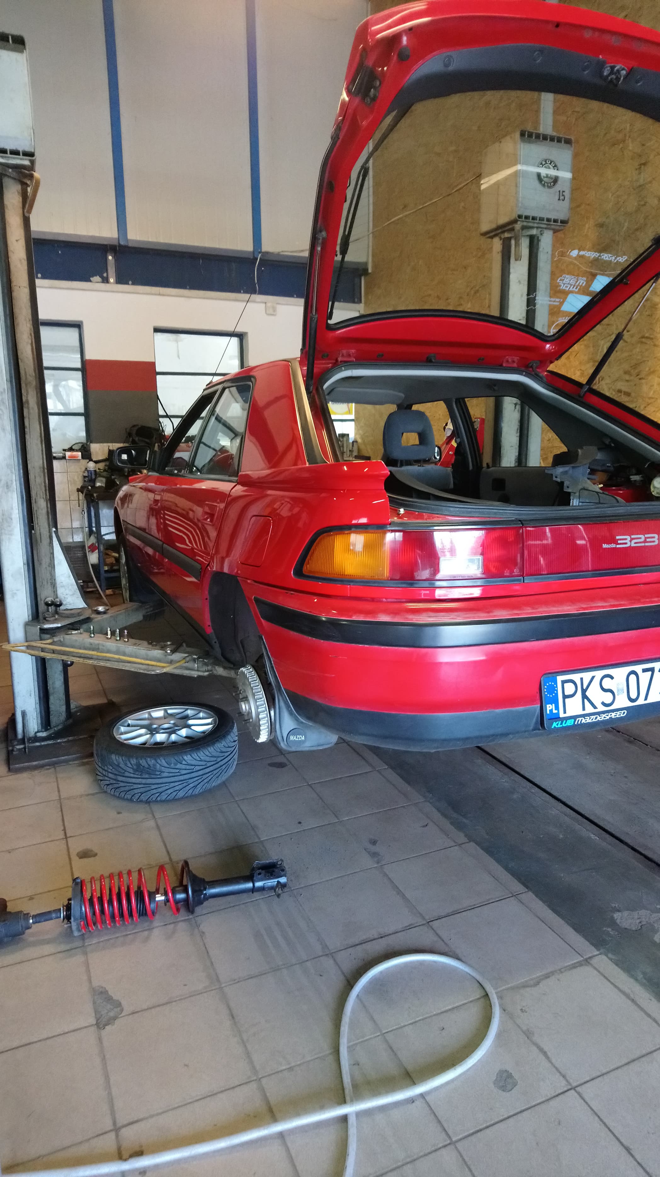 Przygód BGtki ciąg dalszy... jako, że zima coraz bliżej postanowiłam skorzystać z urlopu i na ten czas oddać Mazdę do JDM Service. Główny cel: zrobić ogrzewanie i wyeliminować wzrost temperatury wody przy jeździe powyżej 130km/h. Ogrzewanie zostało zrobione, ale w międzyczasie po jej odebraniu padł czujnik wentylatora i temp. wody znów rosła. Z tego też powodu Bgtka wylądowała na lawecie i tutaj wielkie podziękowania dla Maćka Jasińskiego za pomoc.