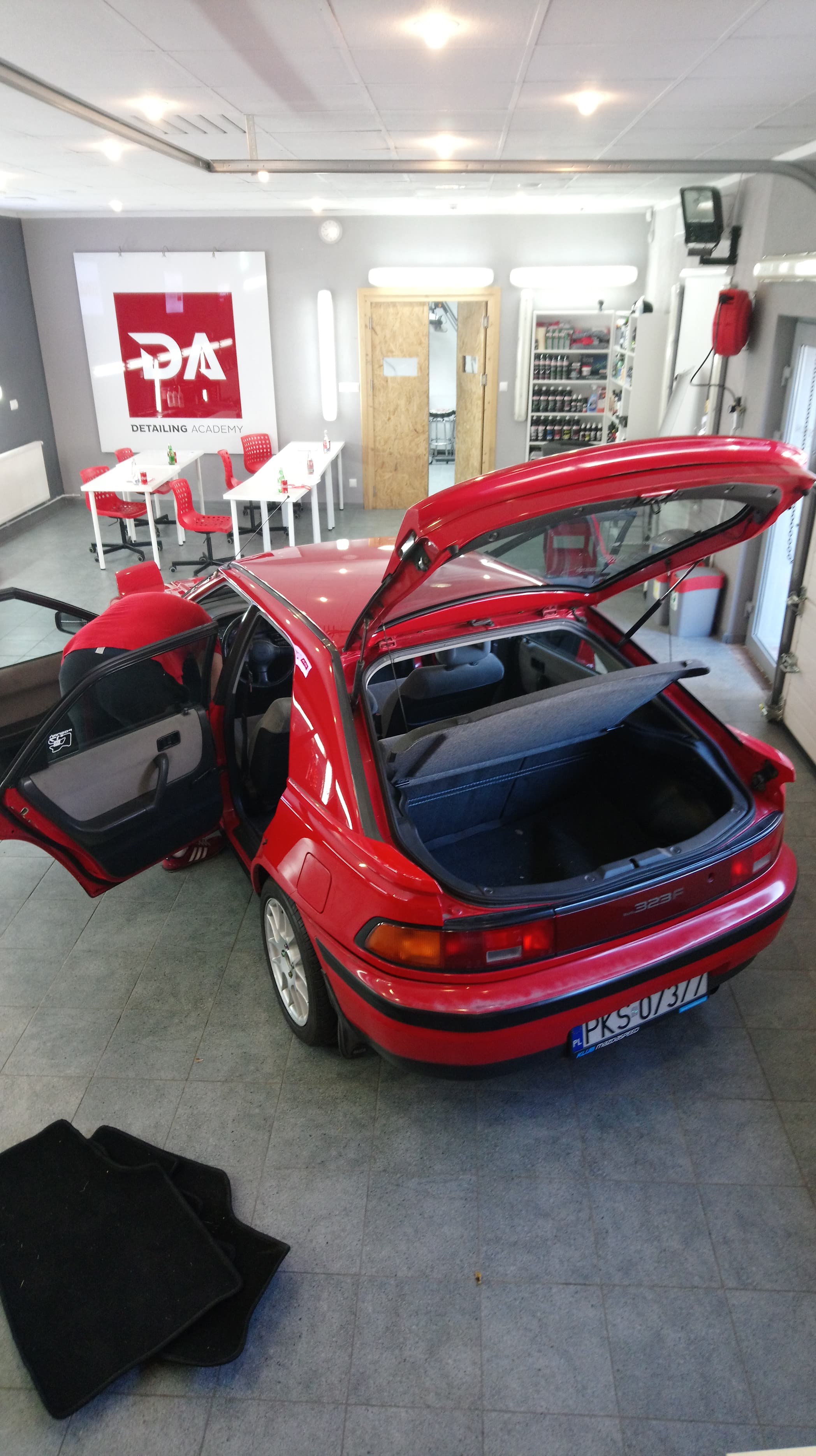 Poza tym co nowego? Wczoraj wjechałam BGtką do Studia Pielęgnacji Aut oraz na szkolenie Detailing Academy, gdzie kursanci mieli doskonałą okazję nauczyć się prać wnętrze samochodu, który jest mocno zaniedbany. Zostawiłam im Mazdę na 2 dni. Efekt? Powiem dwoma słowami – jest pięknie!