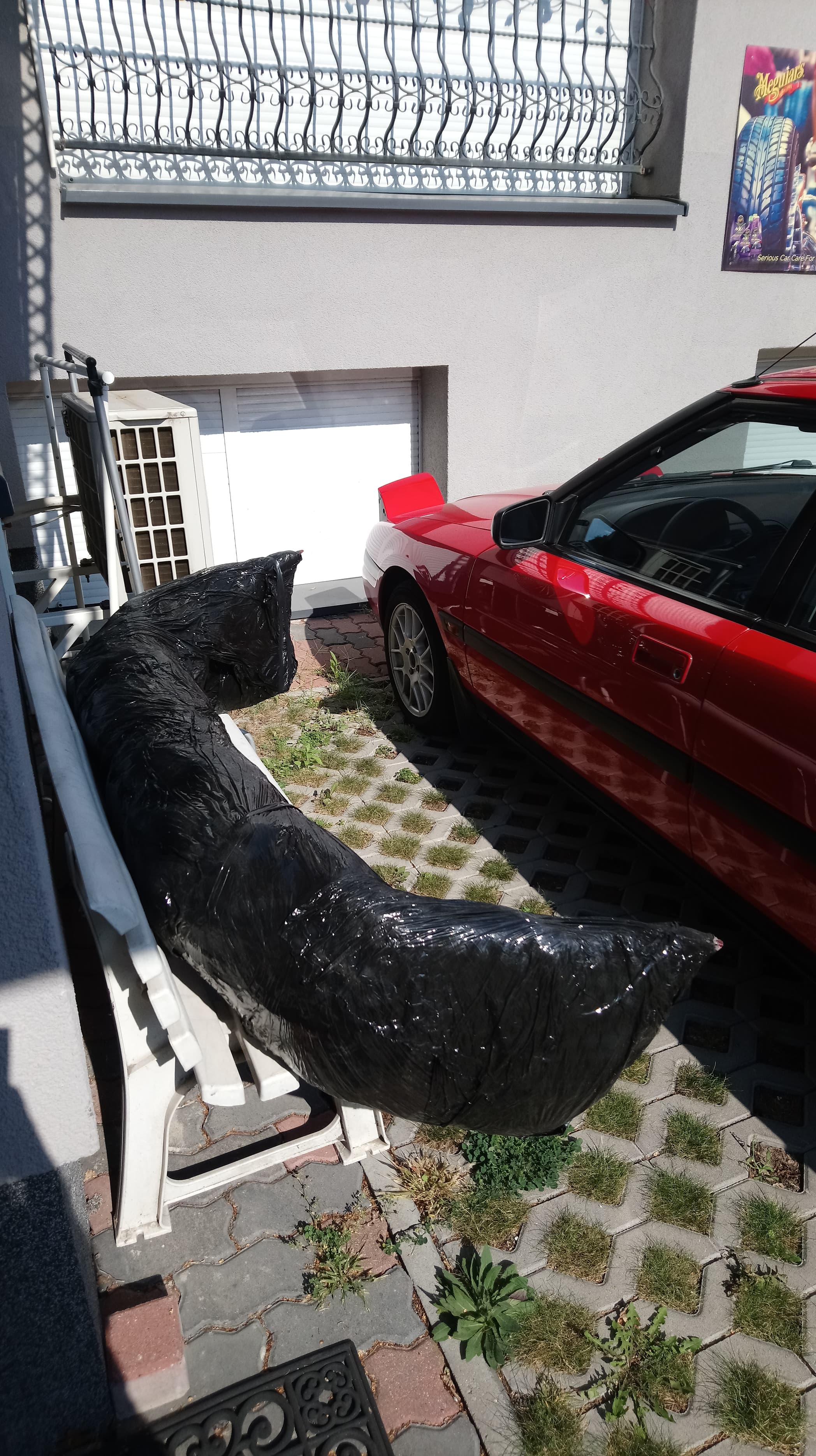 Na zdjęciach brakuje listwy przy przedniej szybie, udało mi się znaleźć całą w ładnym stanie – jutro zakładamy. No i wymieniam jeszcze opony z przodu, bo obecne w każdej chwili mogą wybuchnąć... nie są w najlepszym stanie.