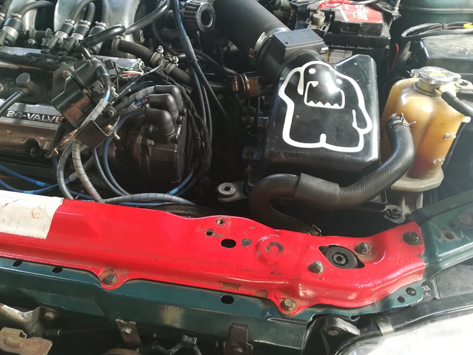 -Poduszki silnika przód poli,nad skrzynią wzmocniona klejem do szyb i dorobiona tulejka by luzów nie miała,prawa poducha nowa, tylna pod skrzynią (ta z tyłu) ciut zalana tyle ile dało się dość do niej klejem.