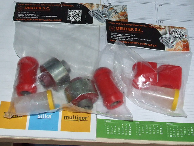 U siebie zamontowałem z przodu wszystkie tuleje z serii 75 ShA Qdure-flex o twardości najbardziej zbliżonej do oryginału