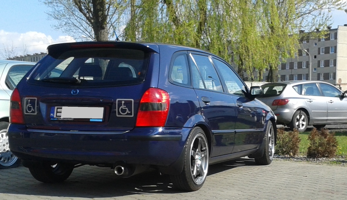 Felgi świetne! I kolorystycznie z nadwoziem fajnie się komponują , i załamania na feldze pasują do kształtu nadwozia. Super! Mazda 323F BJ ZL'00 AT KULAWY NA WÓZKU